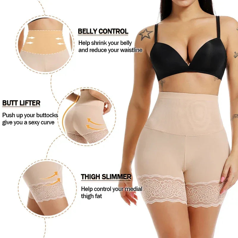 Lace High Waist Shapewear Boyshorts for Tummy Control