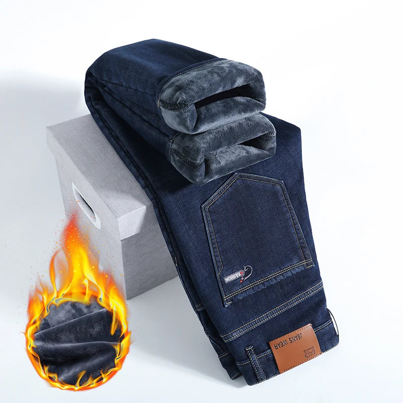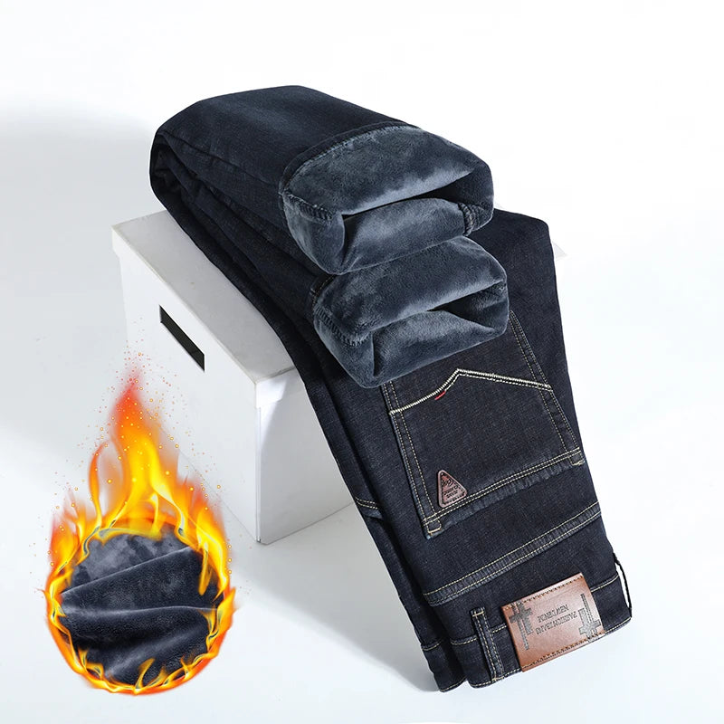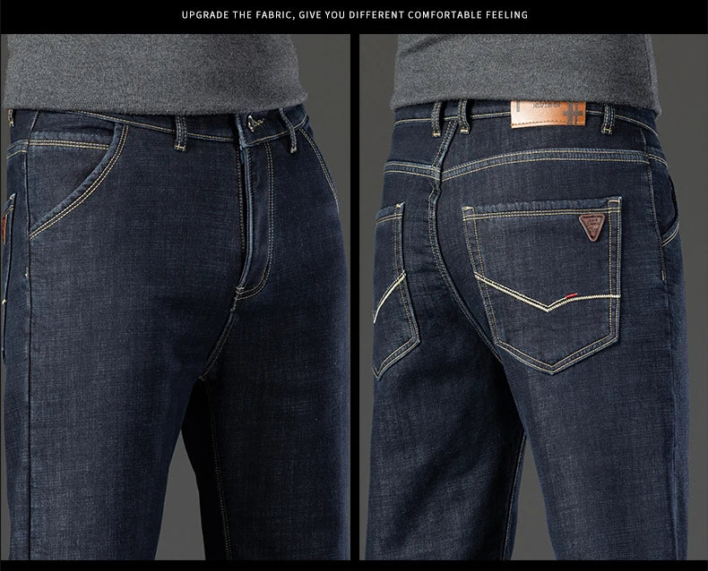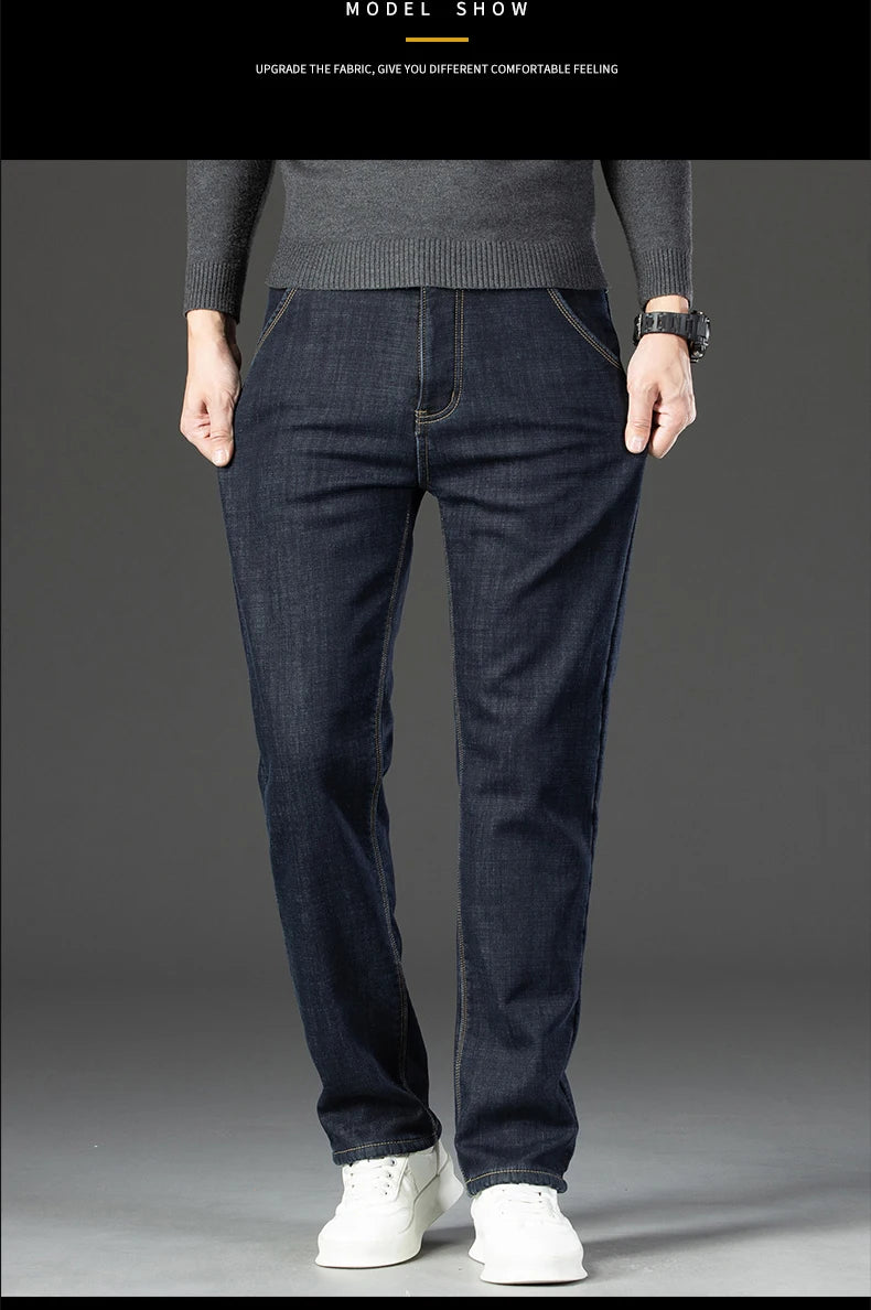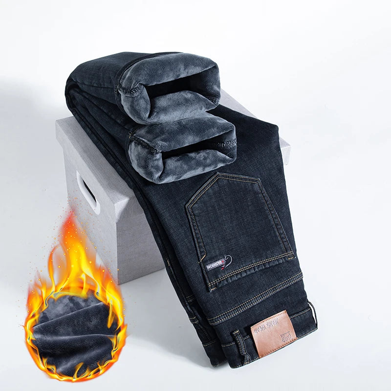 Elevate your winter wardrobe with the Winter Fleece Thick Jeans Men Business Casual Pants Collection. These essential pants combine functionality with timeless style, perfect for important meetings or laid-back weekends. Say goodbye to the discomfort of traditional jeans and embrace the warmth and comfort these pants offer.