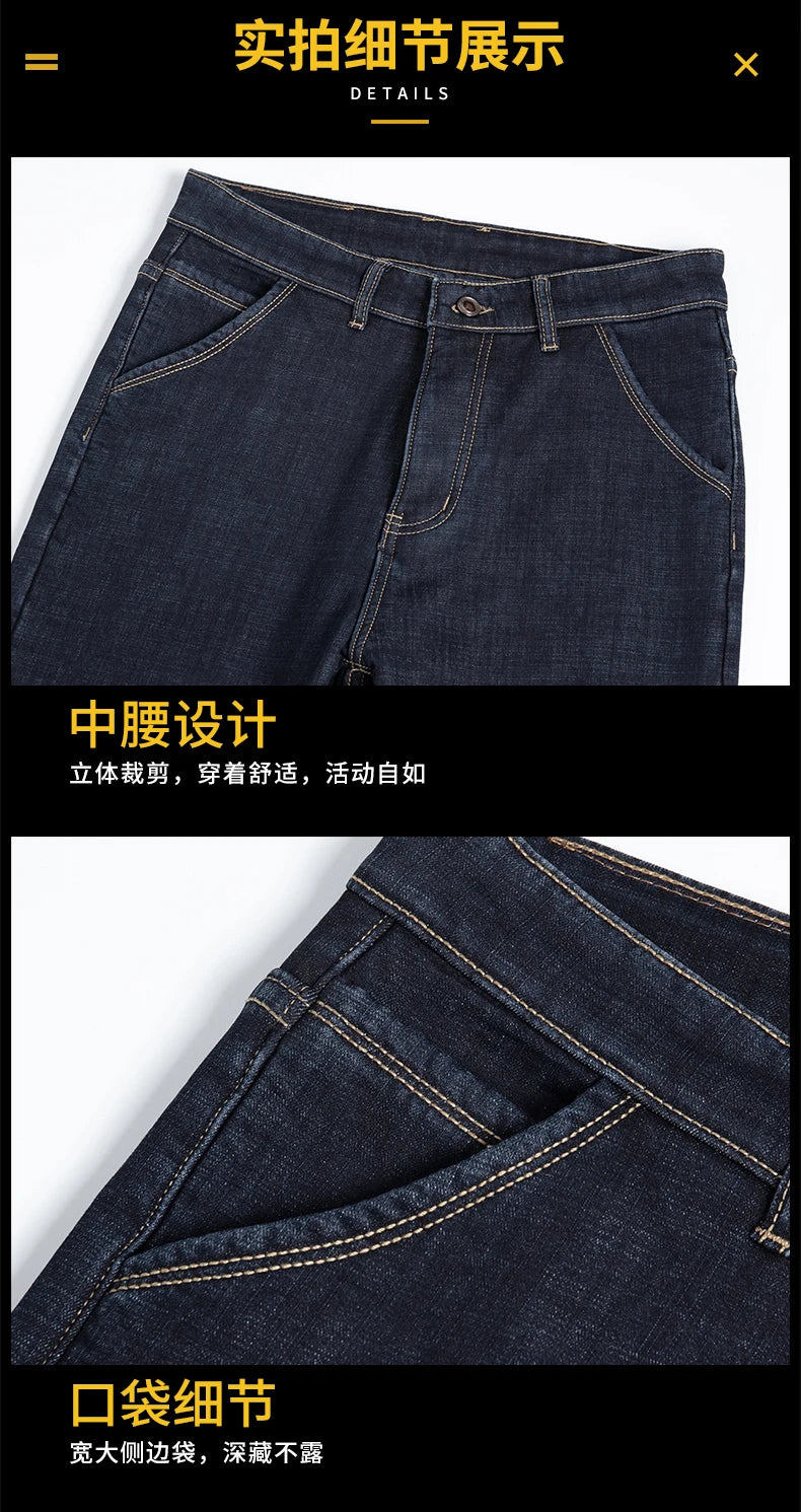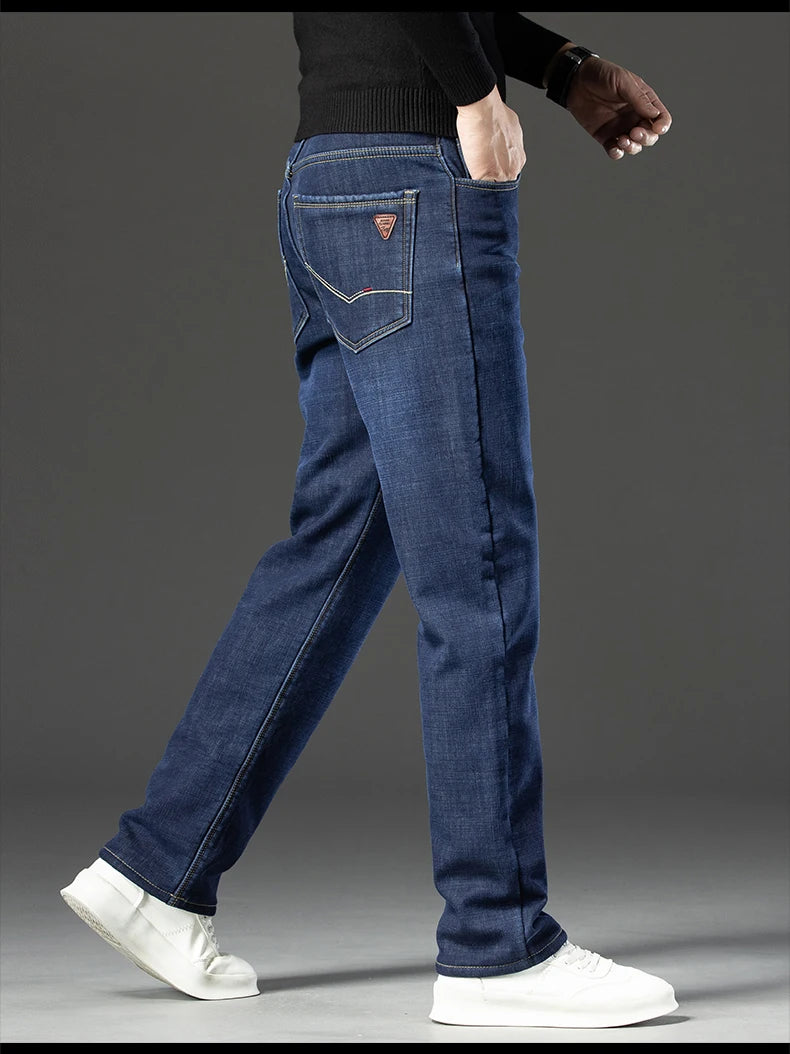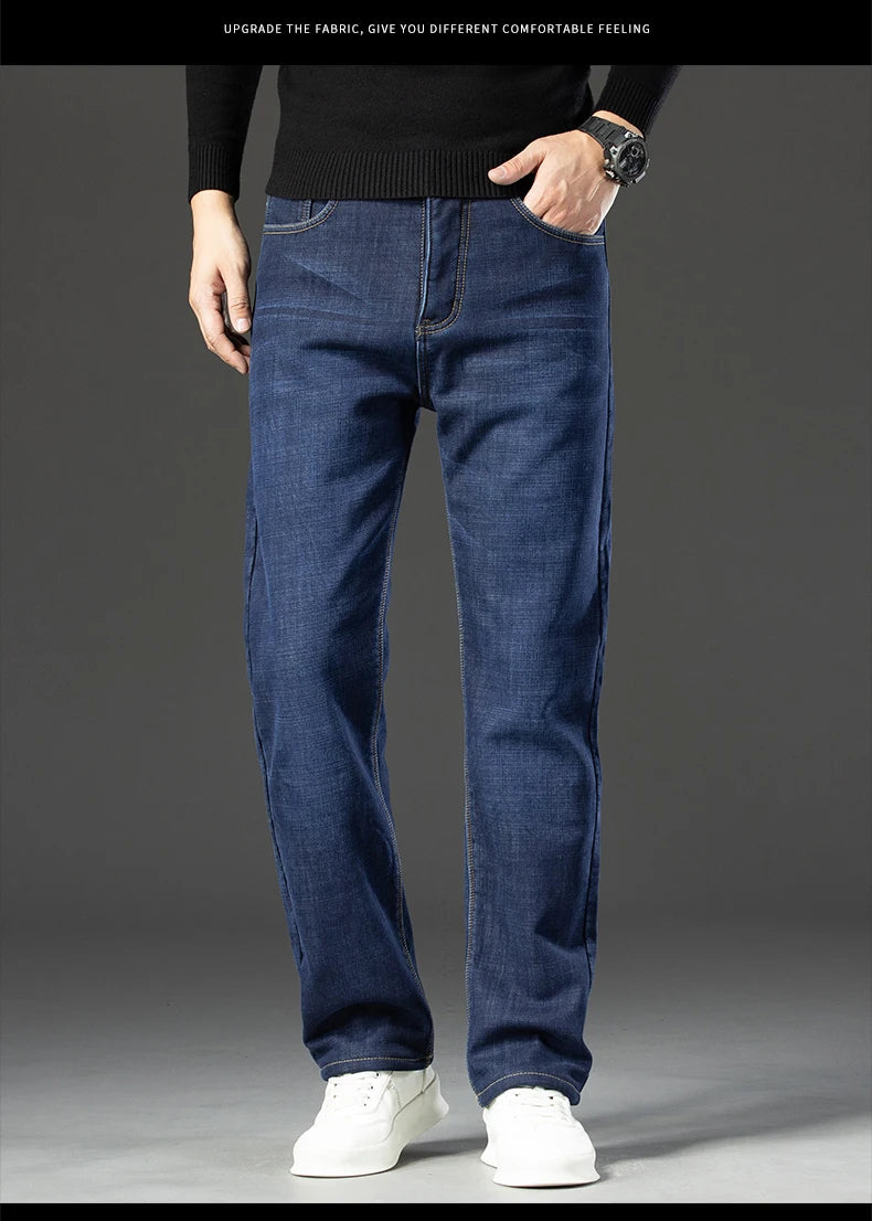Elevate your winter wardrobe with the Winter Fleece Thick Jeans Men Business Casual Pants Collection. These essential pants combine functionality with timeless style, perfect for important meetings or laid-back weekends. Say goodbye to the discomfort of traditional jeans and embrace the warmth and comfort these pants offer.