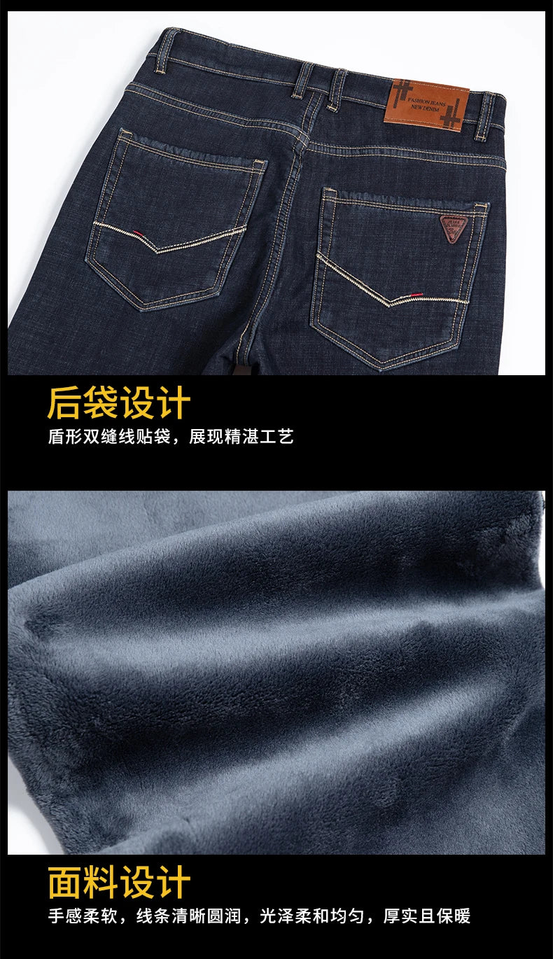 Introducing the Winter Fleece Thick Jeans Men Business Casual Pants Collection, your go-to solution for blending style and comfort this winter. Designed to withstand the cold while keeping you looking sharp, these jeans feature a luxurious fleece lining that provides warmth without compromising sophistication.