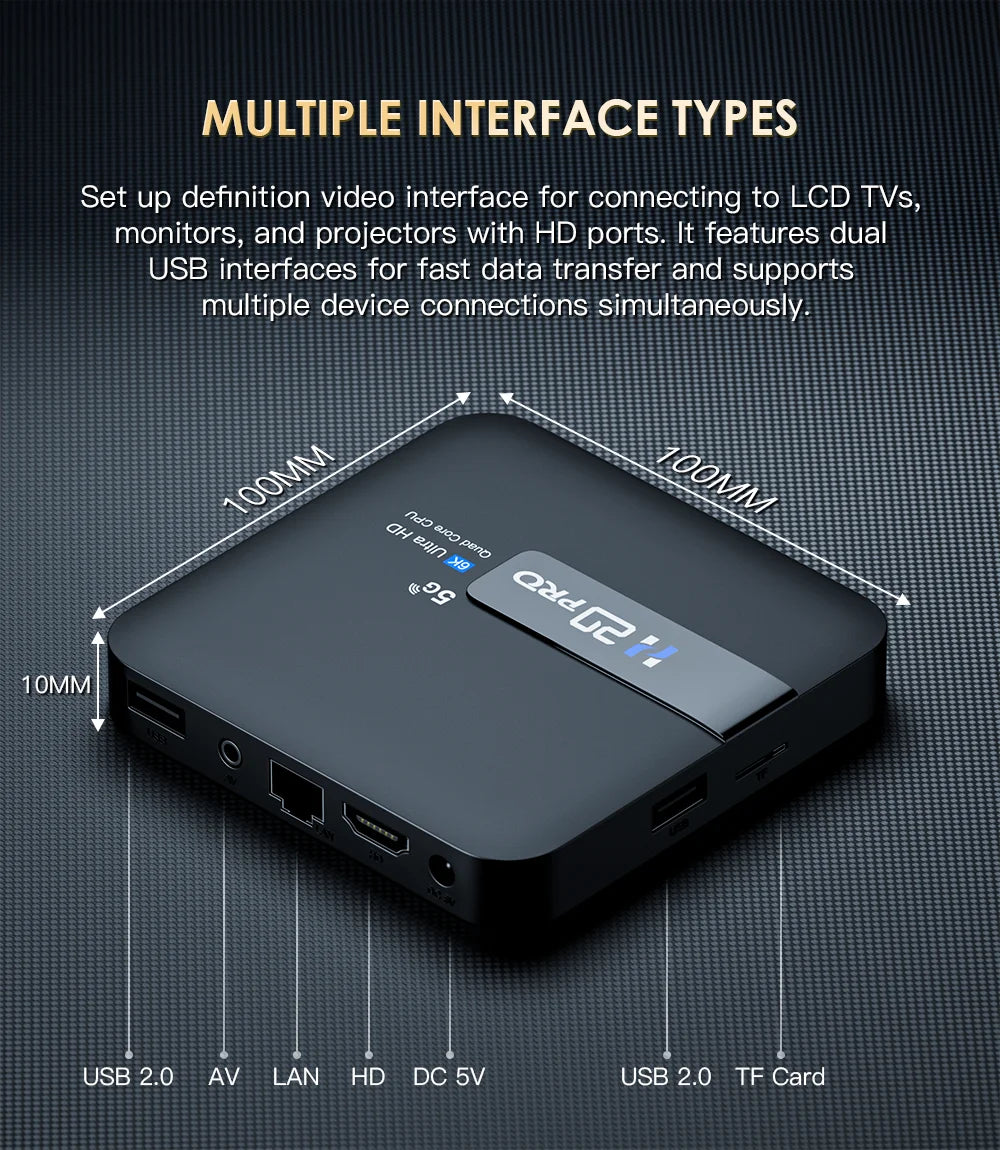 Transform your home entertainment experience with the HONGTOP H20PRO Smart TV Box WiFi6 Android 10 6K 4K 3D Media Player. This cutting-edge device combines advanced technology with user-friendly functionality, making it a must-have for any media enthusiast.