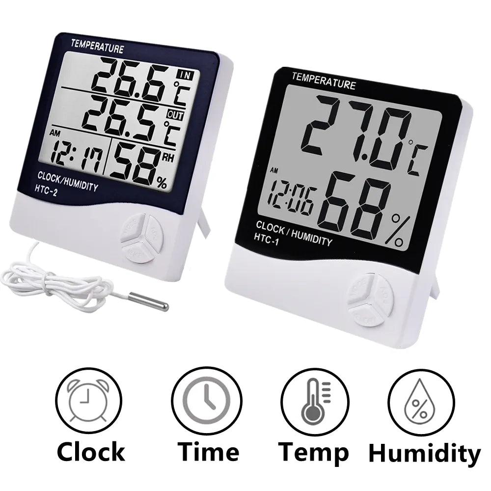 Electronic Temperature Humidity Meter with Clock Indoor Outdoor Weather Station