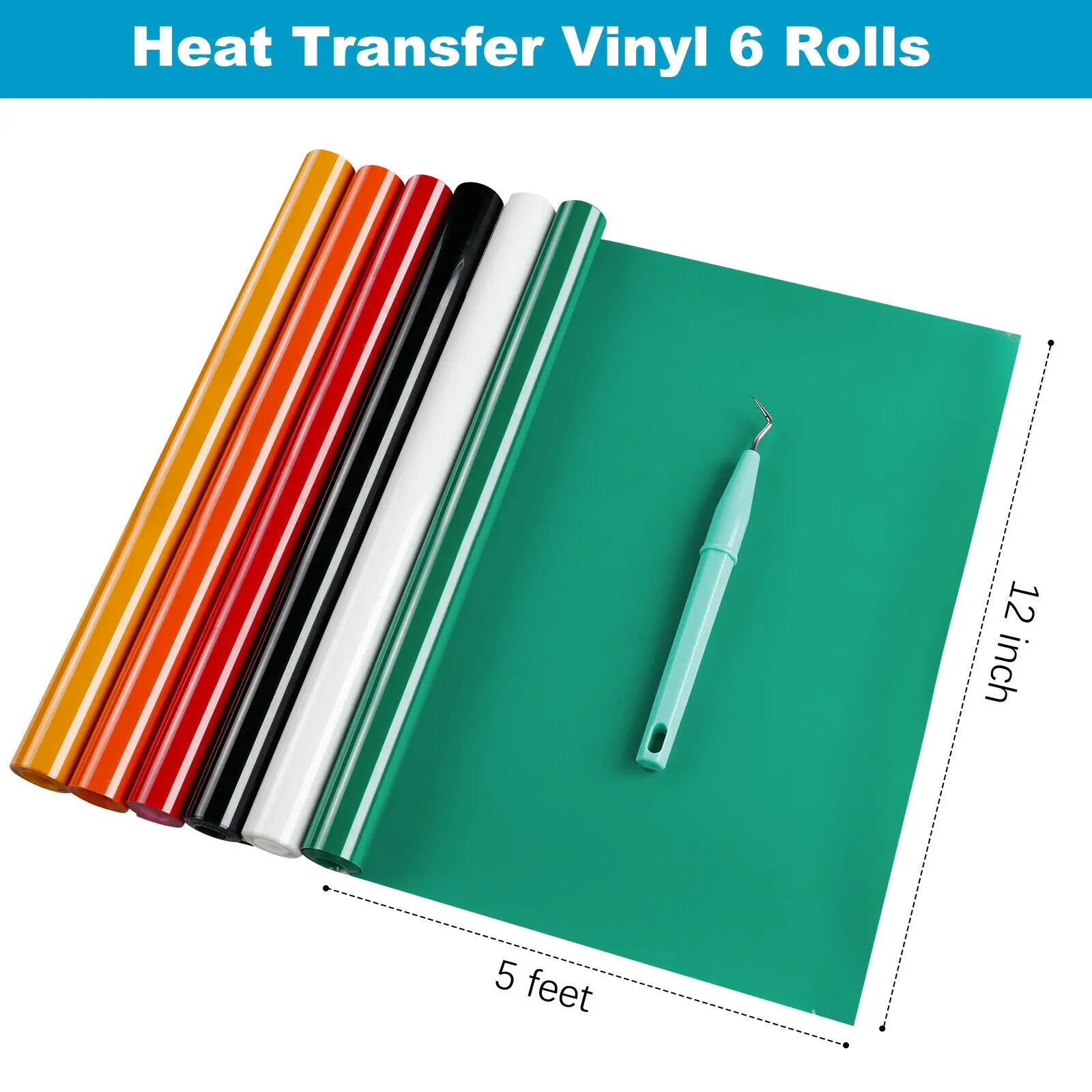 Key Features of HTVRONT 12 Pack Multi Color Heat Transfer Vinyl Roll for DIY: