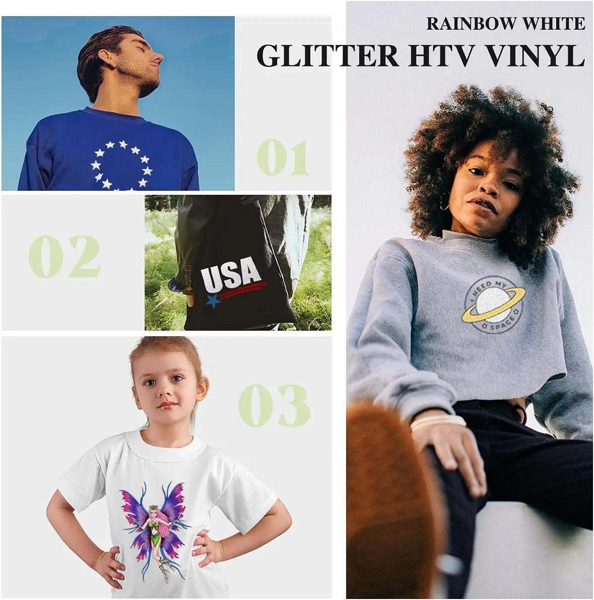 Explore the beauty of crafting with the HTVRONT 10X10ft Rainbow White Glitter Heat Transfer Vinyl Roll and enhance your projects today! Order now to unleash your creativity and let your imagination run wild!