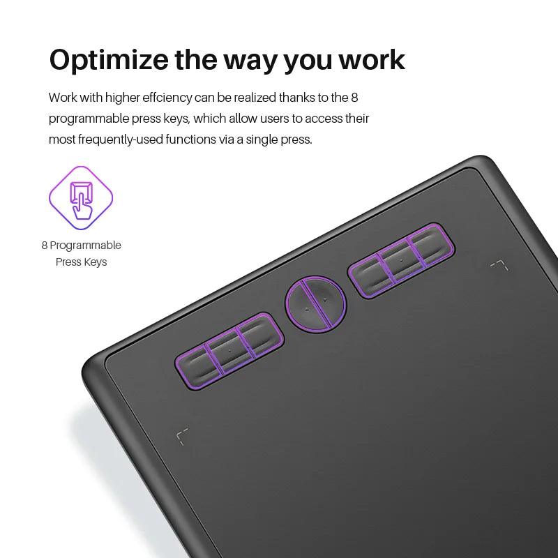 • Customizable Shortcut Keys: Eight programmable keys streamline your workflow for swift access to your favorite tools.