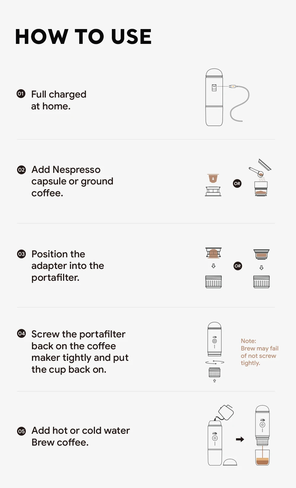 • Ease of Use: Simple operation for fresh coffee wherever you are.