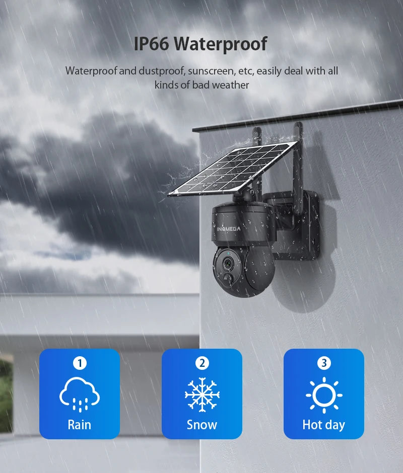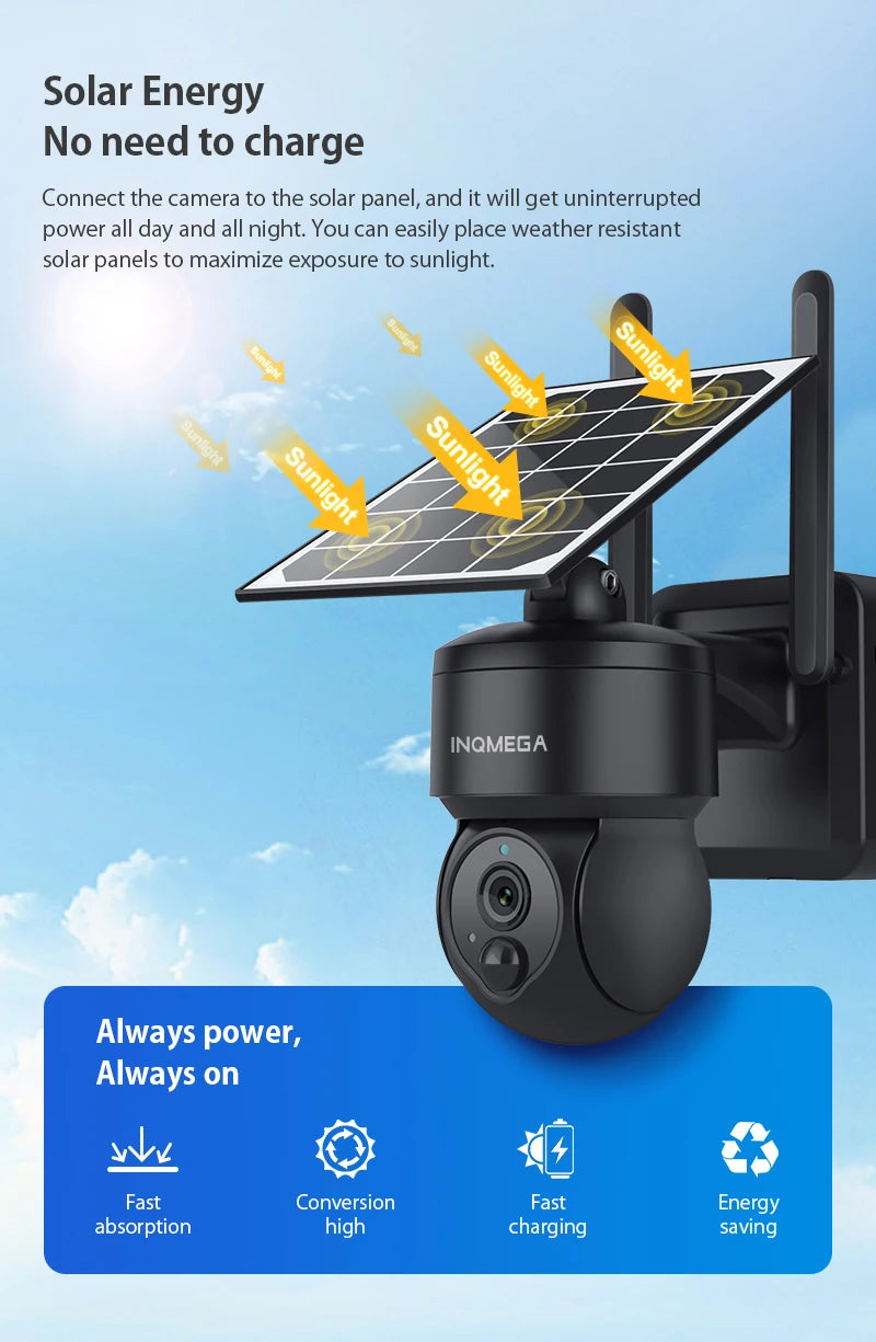 Upgrade your security with the INQMEGA 3MP HD Outdoor WIFI 4G Mini Solar Battery PTZ Camera, a state-of-the-art surveillance solution designed for both safety and sustainability. This innovative camera utilizes solar power, ensuring you have uninterrupted monitoring without the hassle of frequent recharging.