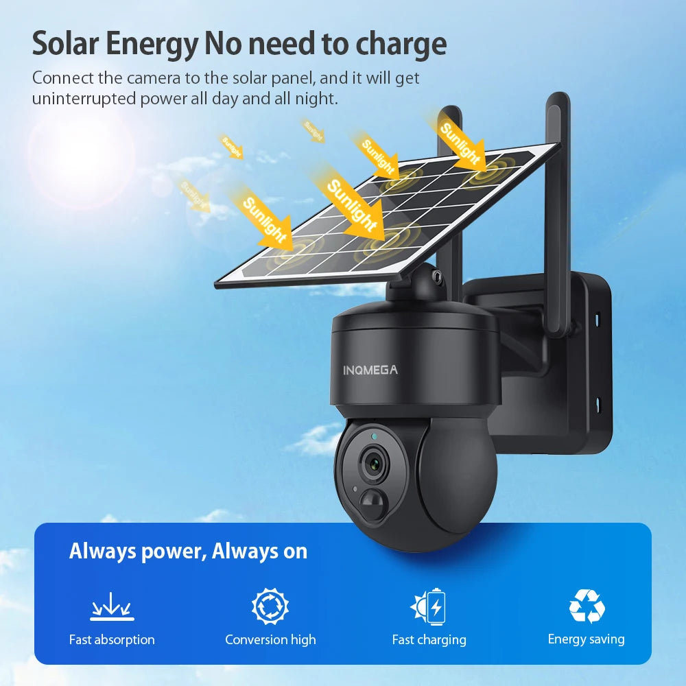 INQMEGA 3MP HD Outdoor WIFI 4G Mini Solar Battery PTZ Camera