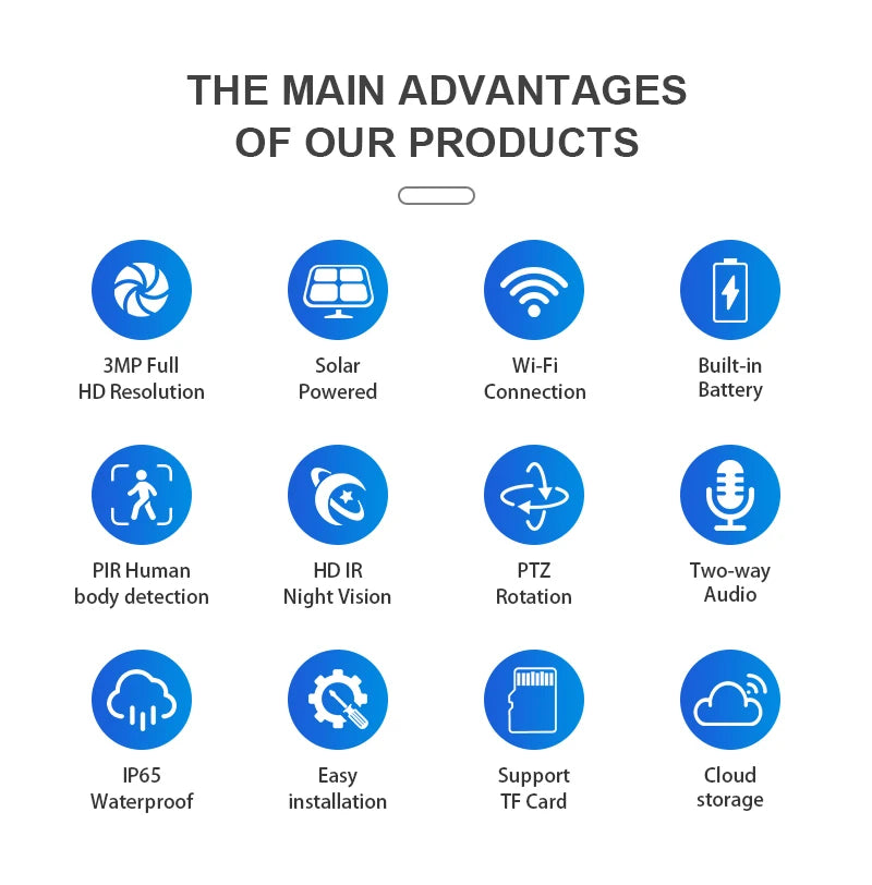 The Mini Solar Battery PTZ Camera is perfect for homeowners and businesses looking for a reliable, high-definition surveillance solution. Its 3MP resolution and 160° viewing angle allow for comprehensive monitoring, enhancing your peace of mind.