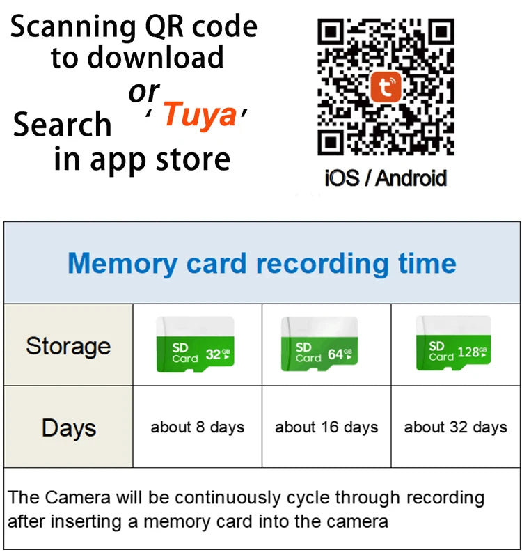 • Storage: Supports up to 128G TF Card
