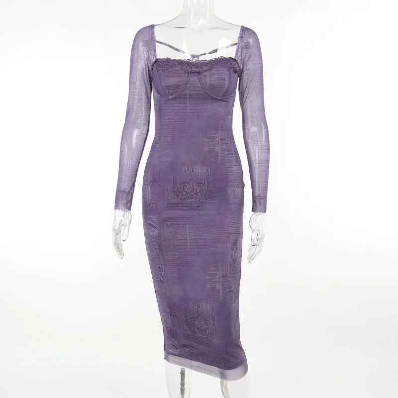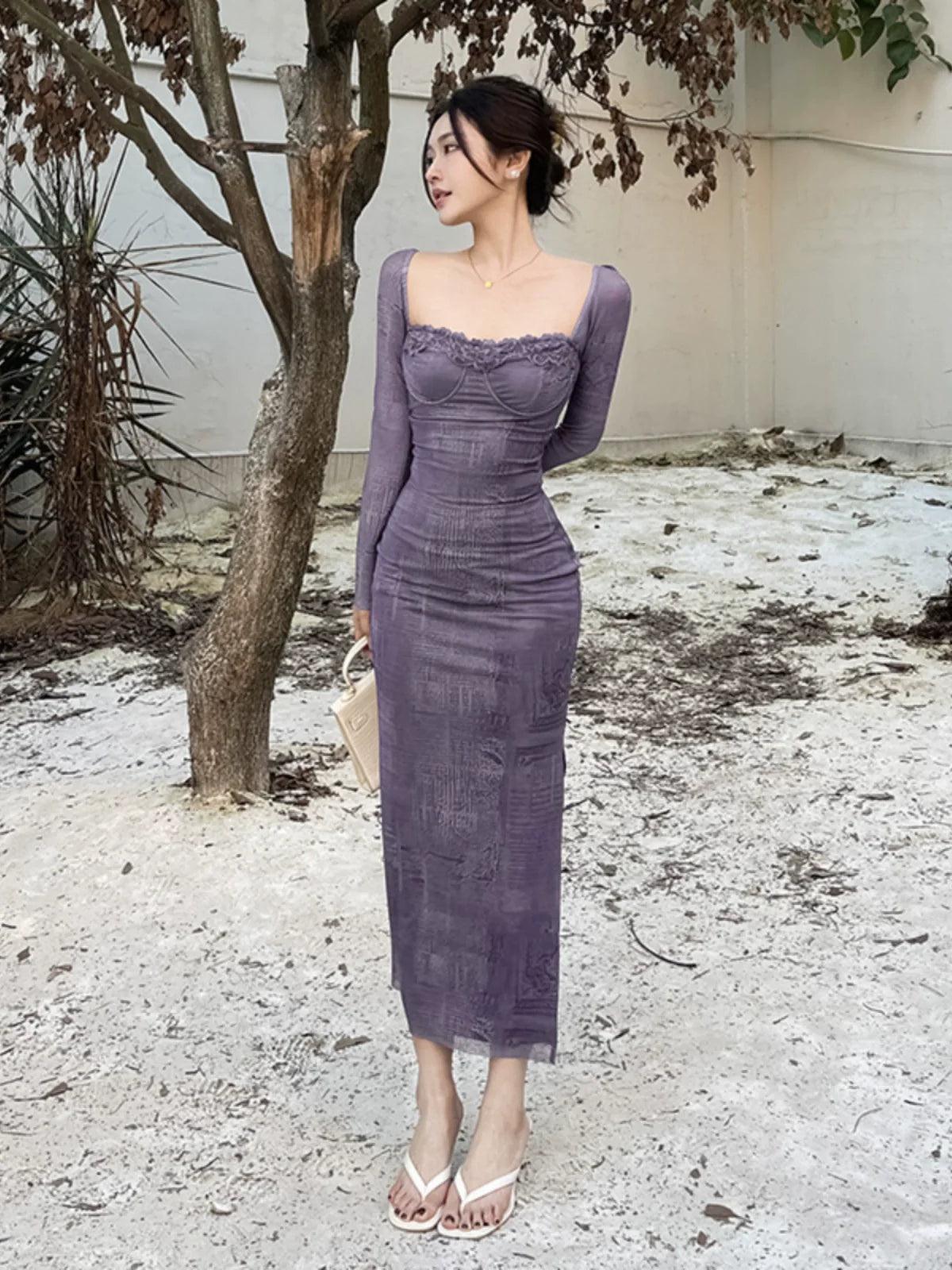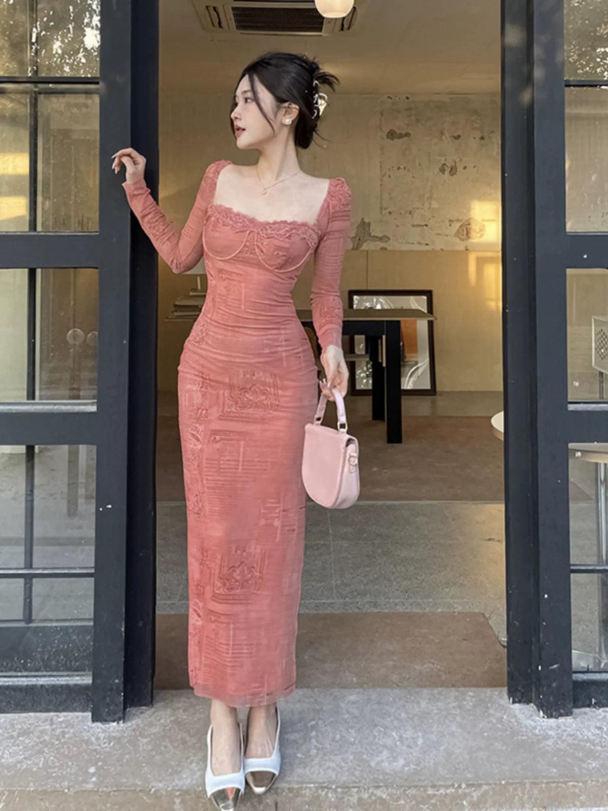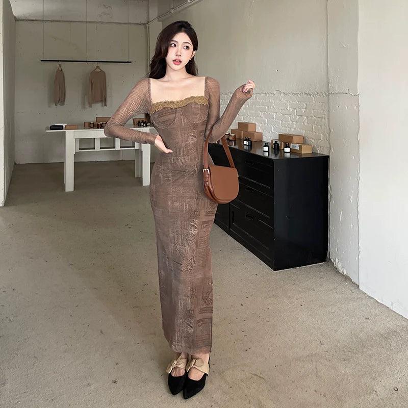 Insdoit Lace Bodycon Dress Retro Chic Winter Fashion