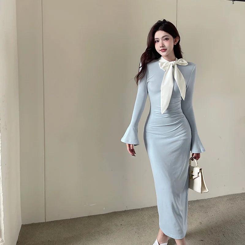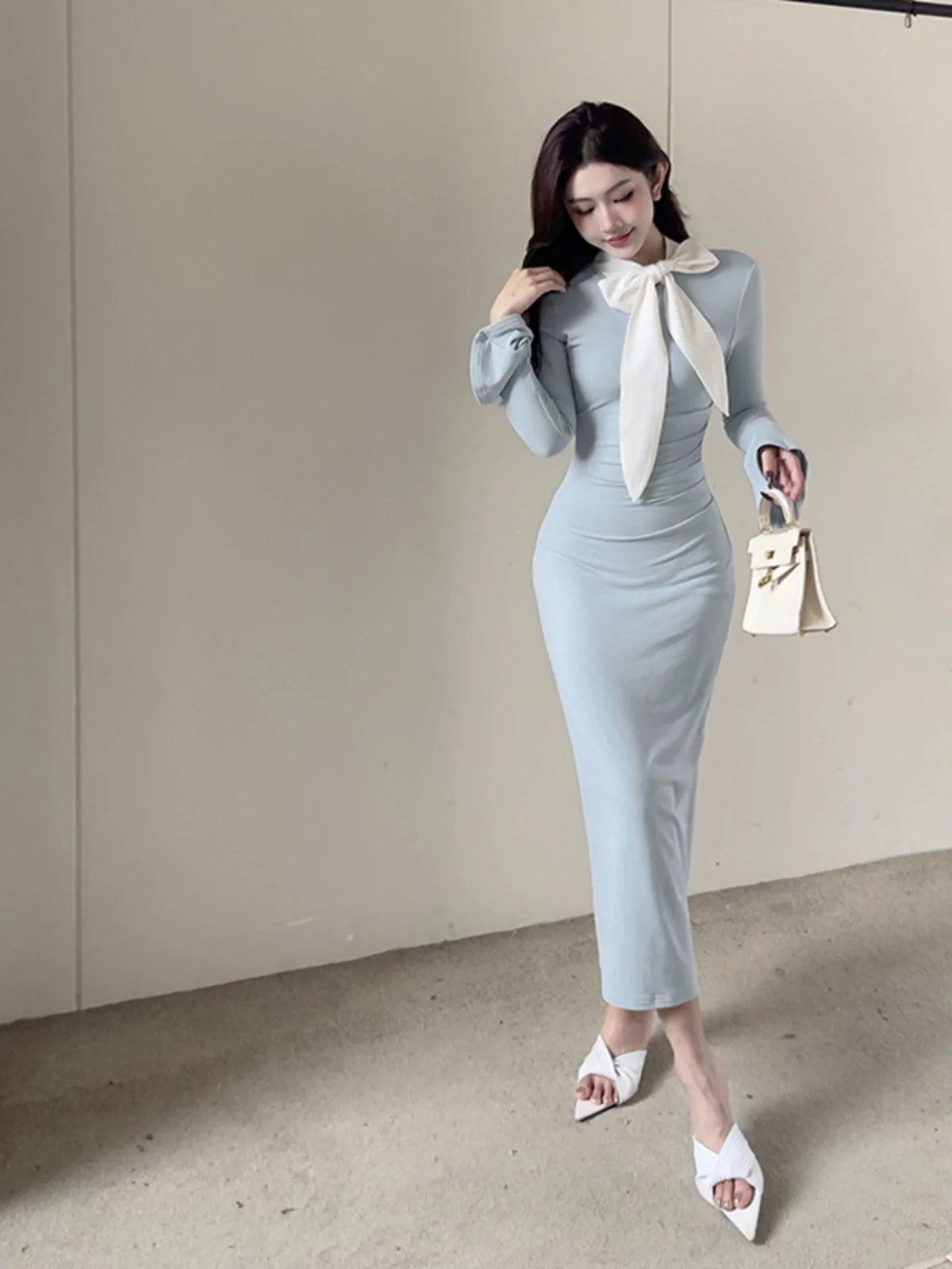 Transform your wardrobe with the Insdoit Dress Chic Slim-Fit Bow Detail Elegant Style Choice. This stunning dress is designed to turn heads and make you the center of attention at any event. Its slim-fit silhouette enhances your natural curves, while the charming bow detail adds a unique touch that sets this dress apart from the rest.
