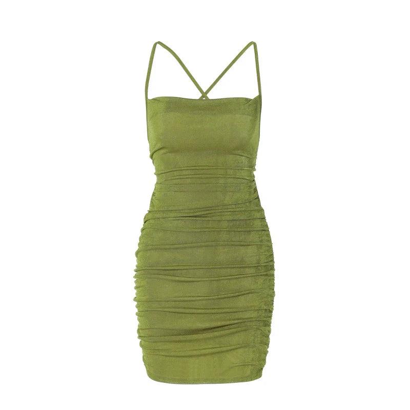 Green Summer Hip Skirt Stylish Cross Strap Street Style