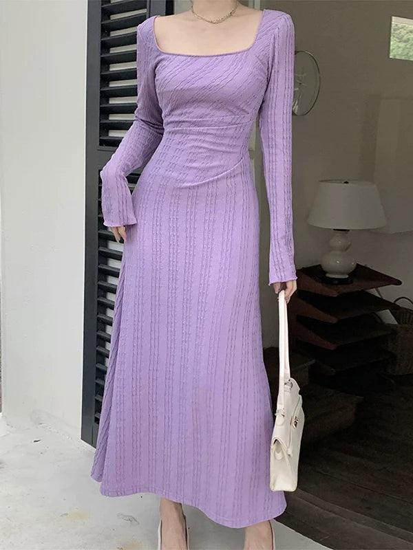 Elevate your wardrobe with the Instahot Purple Dress: Chic Slim Fit with Square-Neck Design. This stunning dress is designed to make you feel confident and elegant, whether you're headed to a formal event or a casual outing.