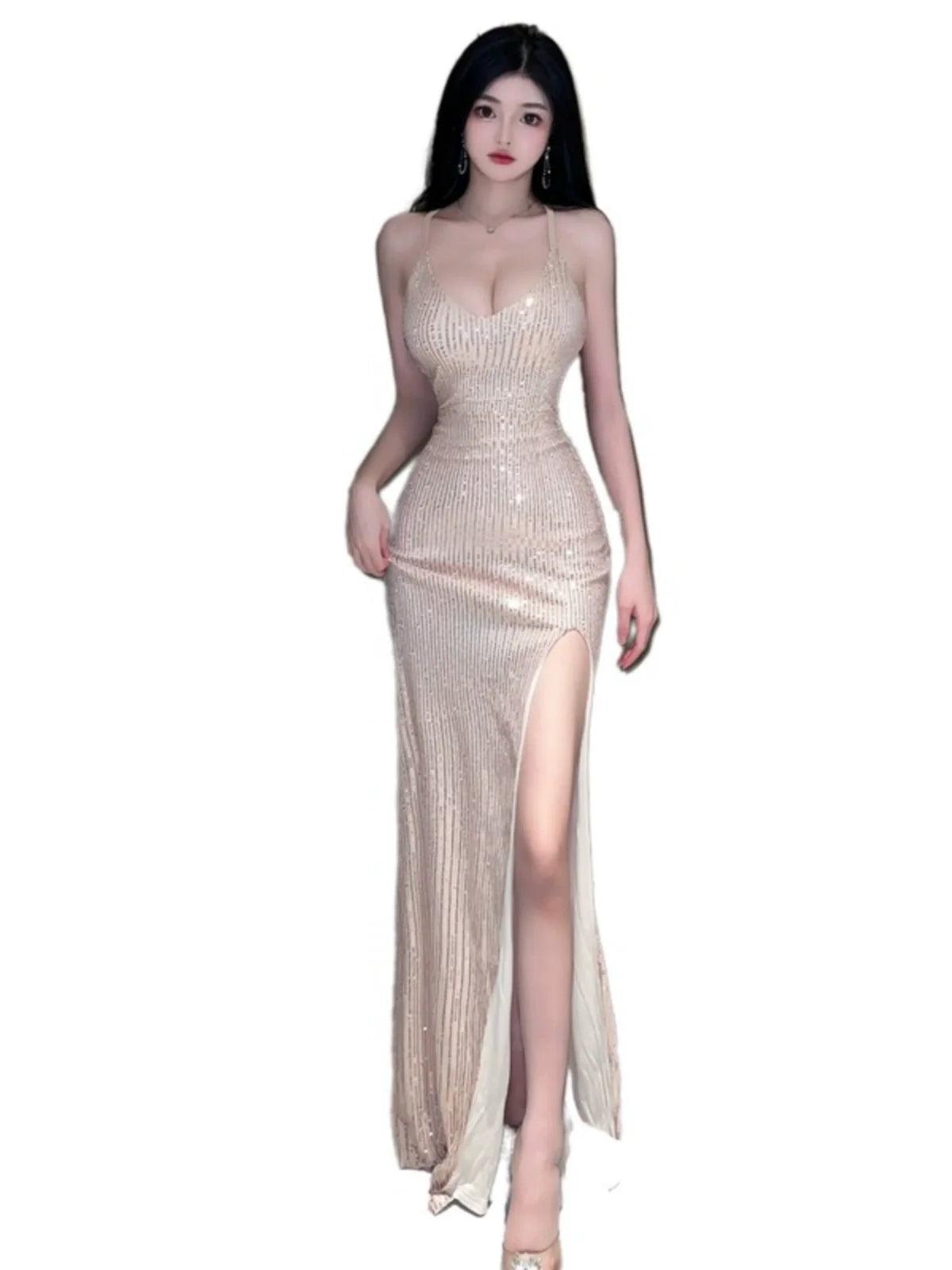 Introducing the Shimmering Backless Sequin Dress: Sparkle with Sophistication - your ultimate choice for making a stunning entrance at any occasion. This exquisite dress is designed to turn heads and keep you feeling fabulous all night long.