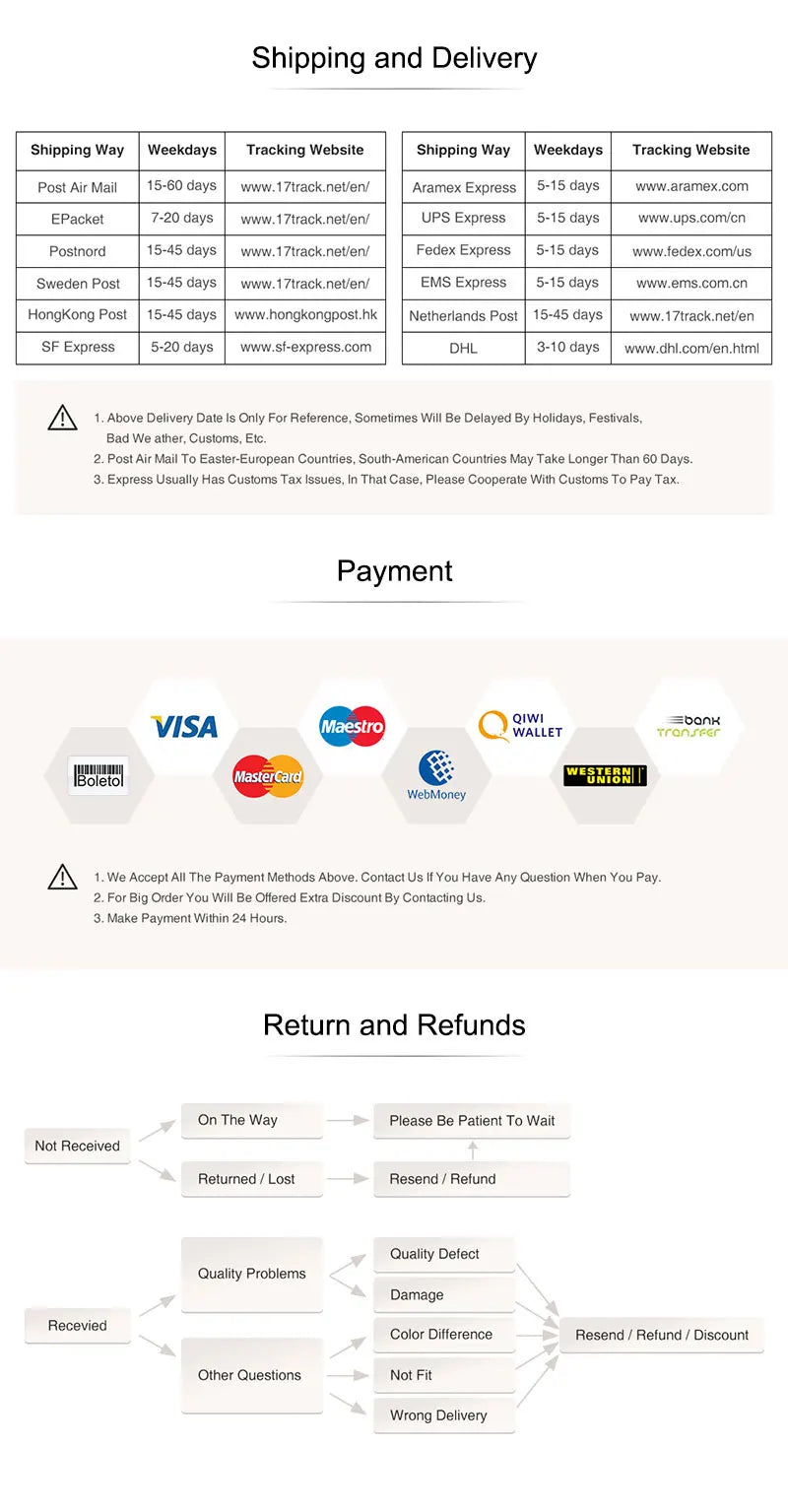 30 days returns. 100% Money back guaranteed no question ask. If the mistake is from Us. See details