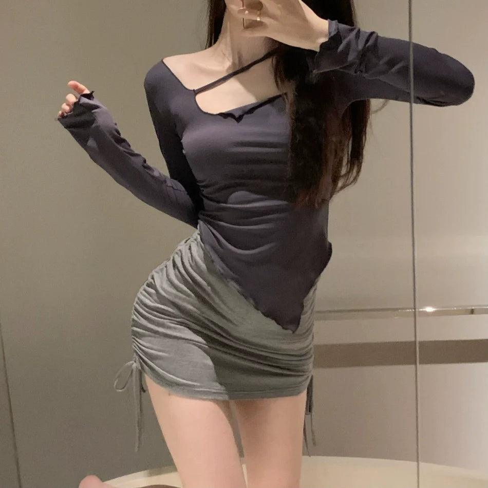 The Irregular High Waist T-Shirt is not just clothing; it's a statement piece. This t-shirt embodies a modern aesthetic that resonates with the trendy crowd. Its unique high waist design and stylish irregular hem showcase fashion-forward thinking, while the long sleeves provide functionality for those chillier days.