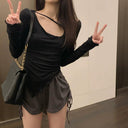 Elevate your fashion game with the Irregular High Waist T-Shirt Trendy Comfort Modern Style. This chic and stylish long-sleeved t-shirt is crafted for young adults who want to make a lasting impression while enjoying all-day comfort. It's perfect for any occasion, blending modern aesthetics with practical wearability.