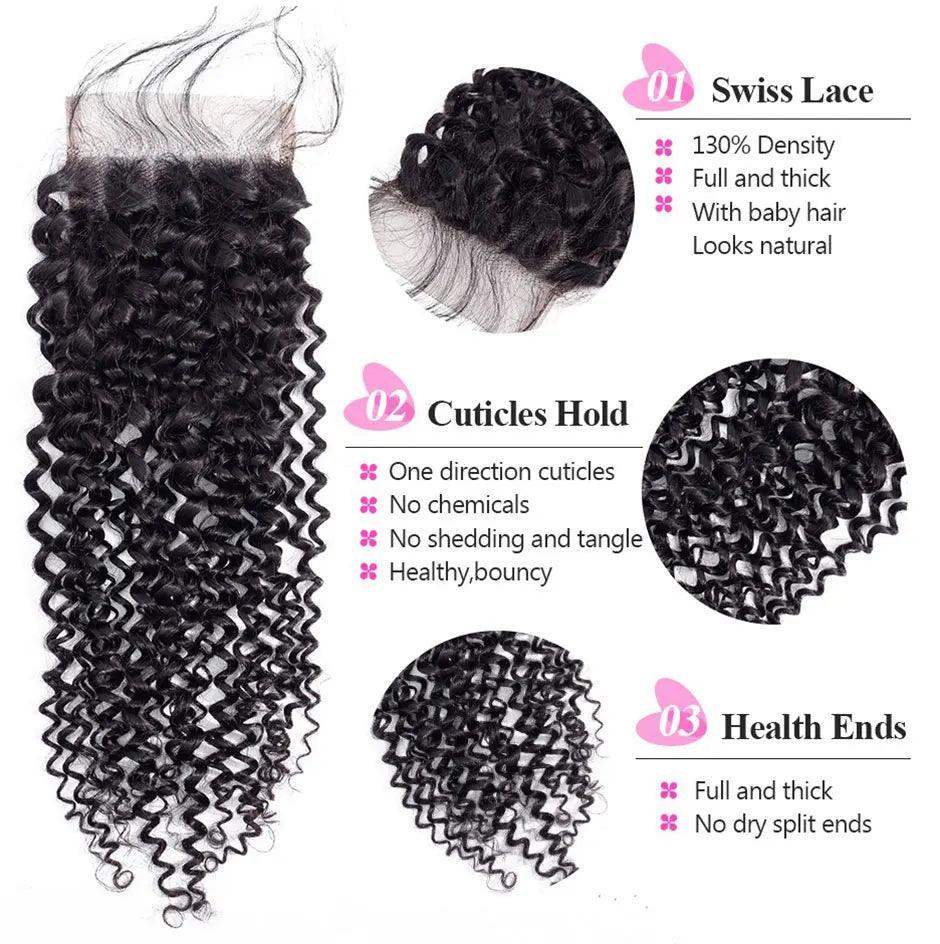 Kinky Curly Lace Closure Premium Human Hair Blend Style