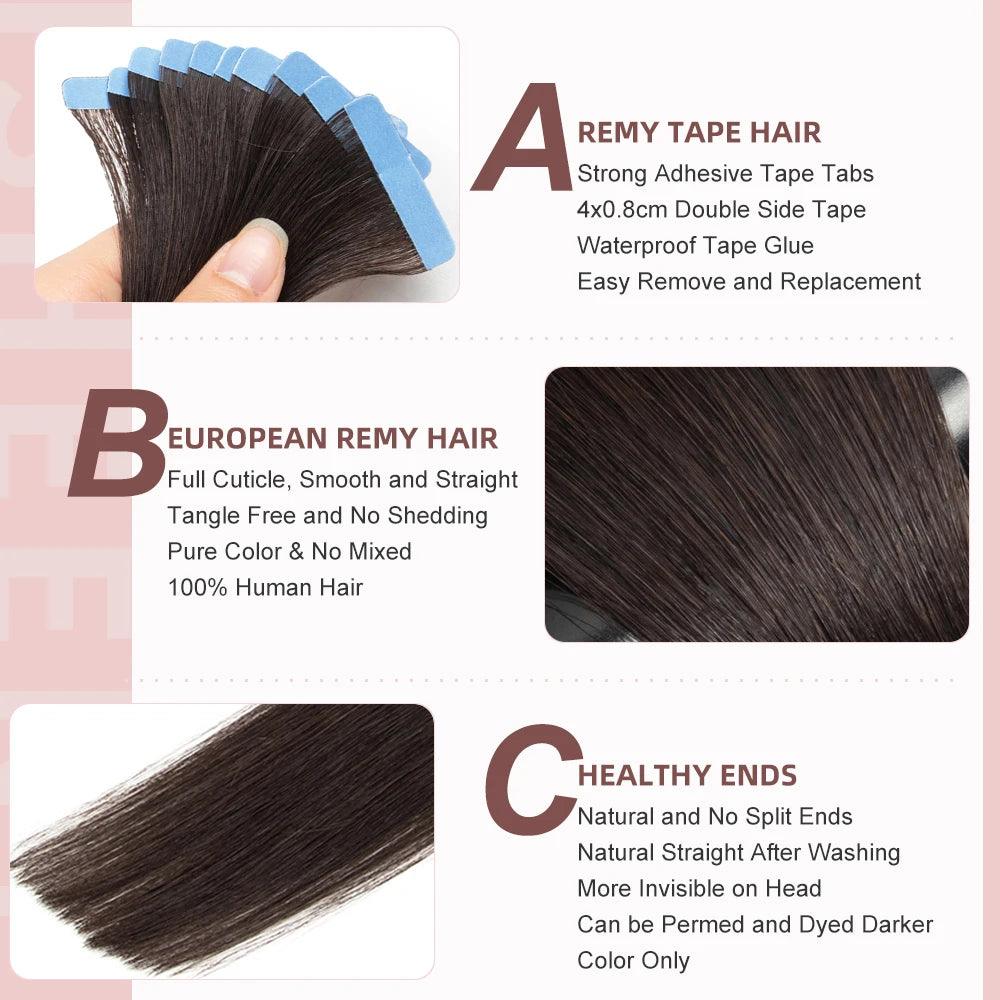 • Easy Application: The user-friendly tape-in design allows for seamless application, perfect for both home and salon use.