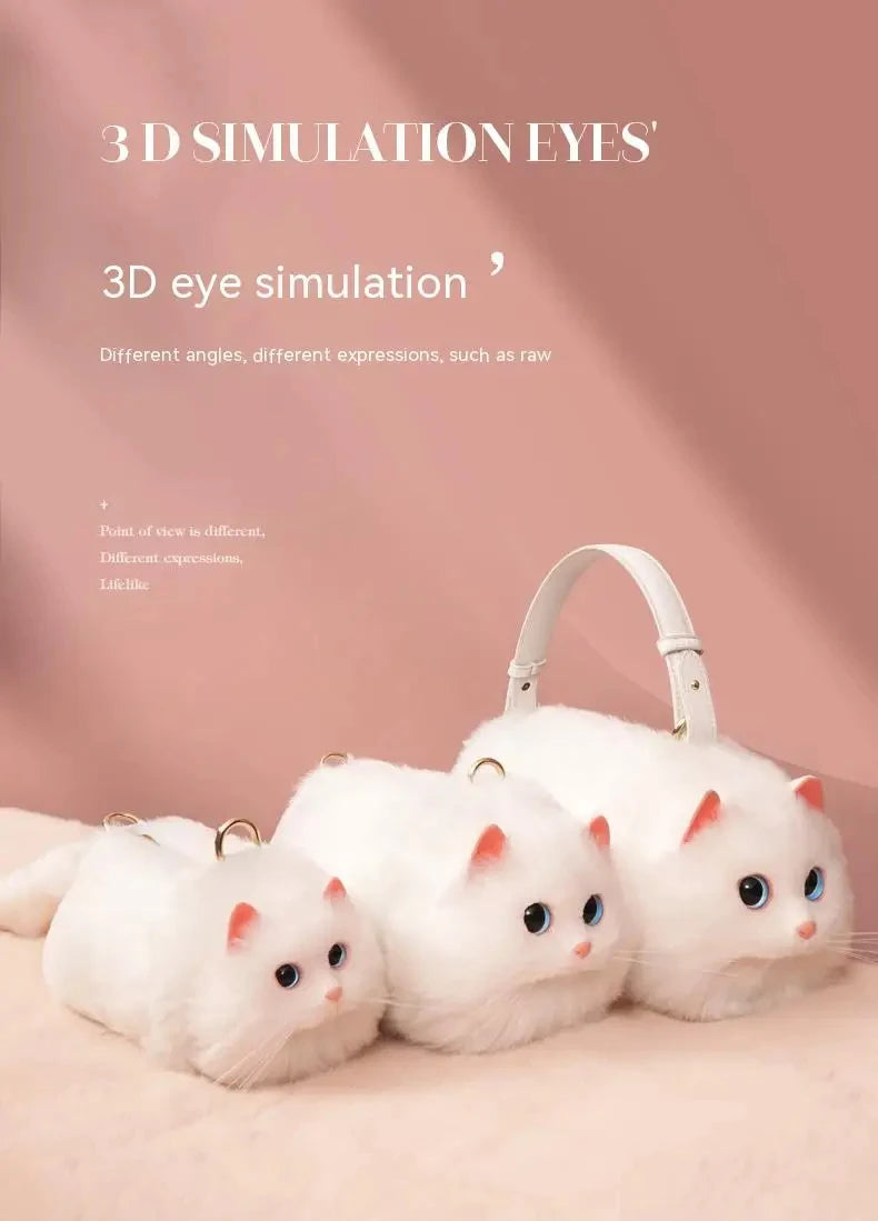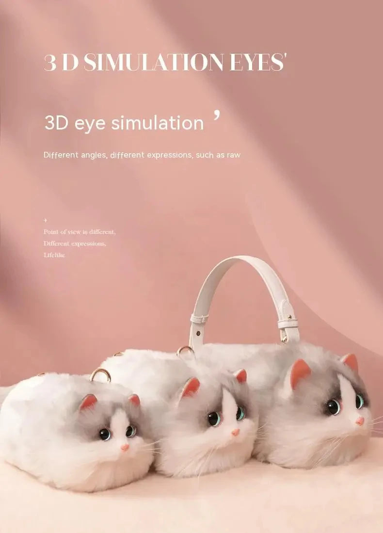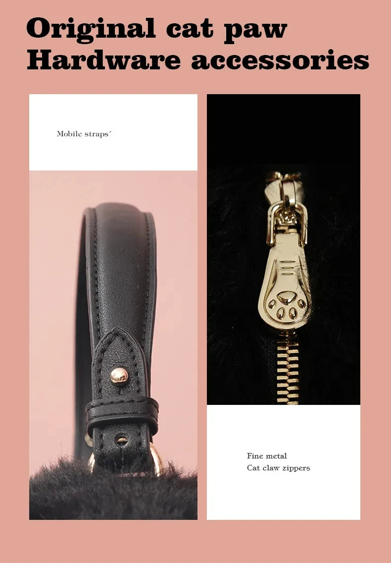 JIAERDI Lolita Plush Cute Cat Bag Women Harajuku Fur Bag