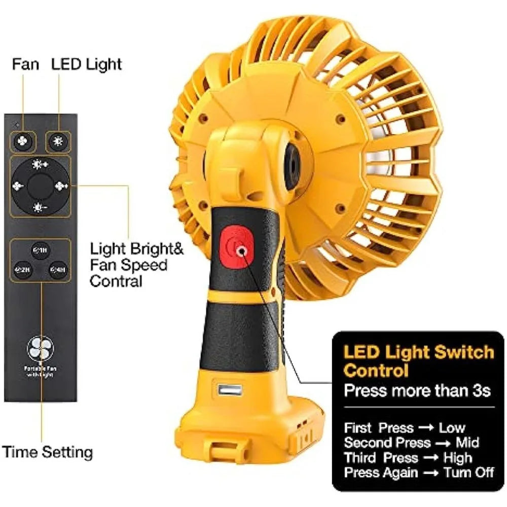 Dewalt-Compatible Jobsite Fan with LED Light Portable Cooling