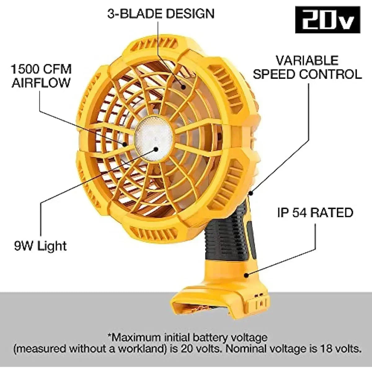 Compatible Jobsite Fan with LED Light Portable Cooling
