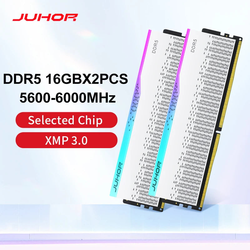 Unlock your system's full potential with the JUHOR Desktop Memory RGB DDR5 16GBX2 6000MHz High Speed Ram. Perfectly engineered for gamers, content creators, and multitaskers, this RAM kit provides unmatched performance with stunning RGB lighting to elevate your desktop setup.