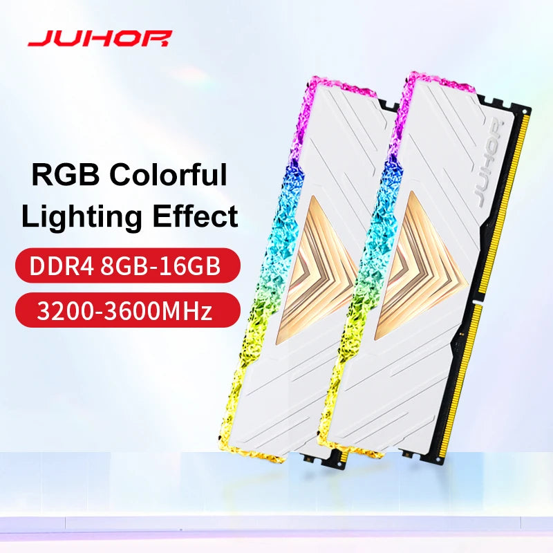 Elevate your gaming experience with the JUHOR RGB DDR4 16GBX2 3200MHz Dual Channel Gaming RAM. Designed for high-performance desktop systems, this dual-channel memory kit features 16GB (2 x 8GB) modules operating at a blazing-fast frequency of 3200MHz, ensuring that your games run smoother and more efficiently than ever before.