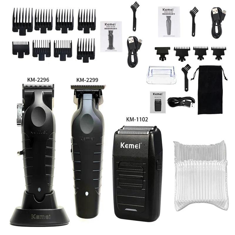 • KM-2296 Package: Comes with 1 hair clipper, 1 USB cable, 1 cleaning brush, 1 manual, 8 limit combs, and 1 seat charger.