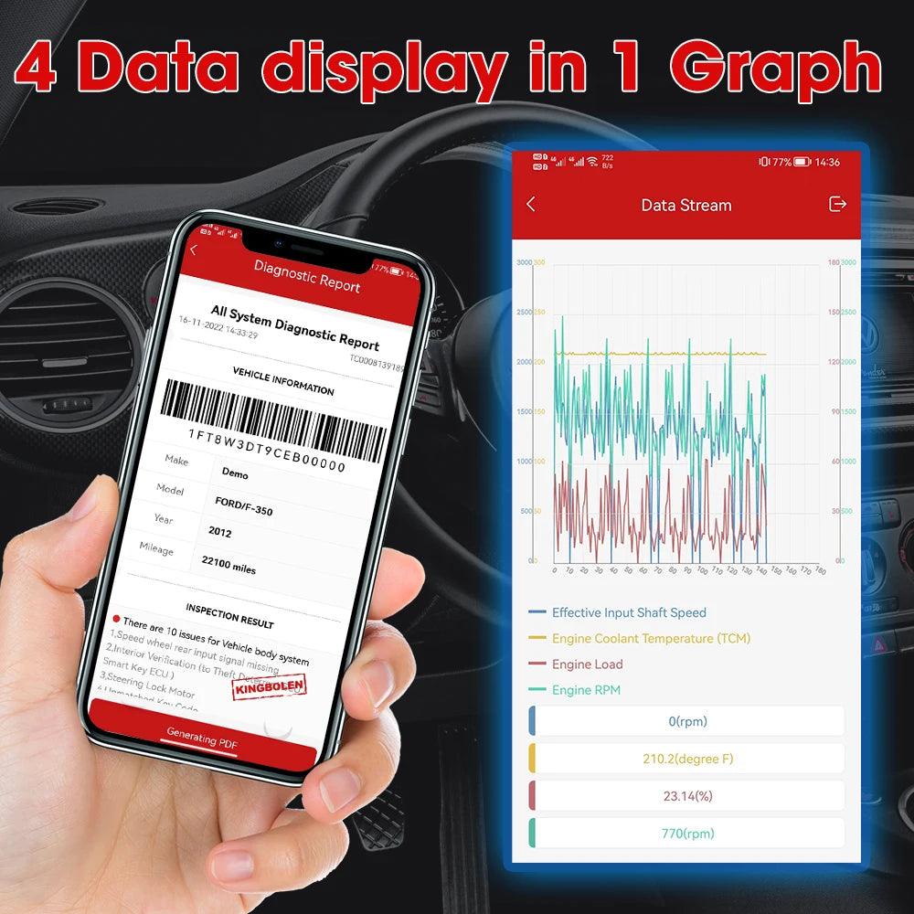 • Bluetooth Connectivity: Connect effortlessly with your Android or iOS device for remote diagnostics.