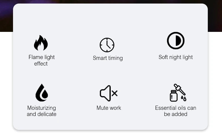 • 1. Ultrasonic Humidification: Utilizes advanced ultrasonic technology to effectively disperse essential oils, providing a refreshing ambiance.