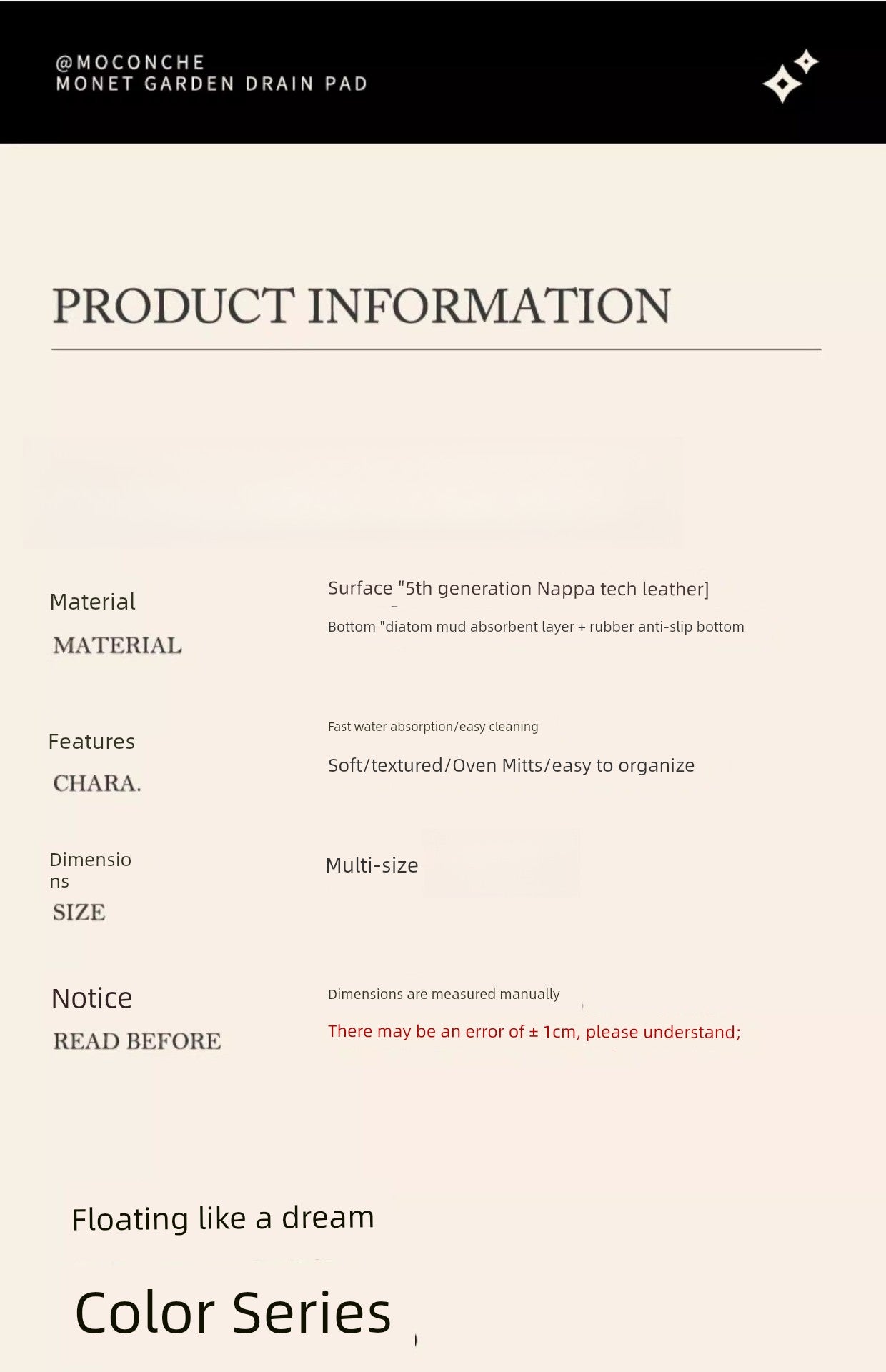 The Kitchen Water Draining Pad is not only a protective layer but also enhances your kitchen organization. Use it under hot pots to shield surfaces from heat damage or as a drying pad for your freshly washed dishes. Its lightweight design makes it easy to clean: simply wipe down or rinse for quick maintenance.