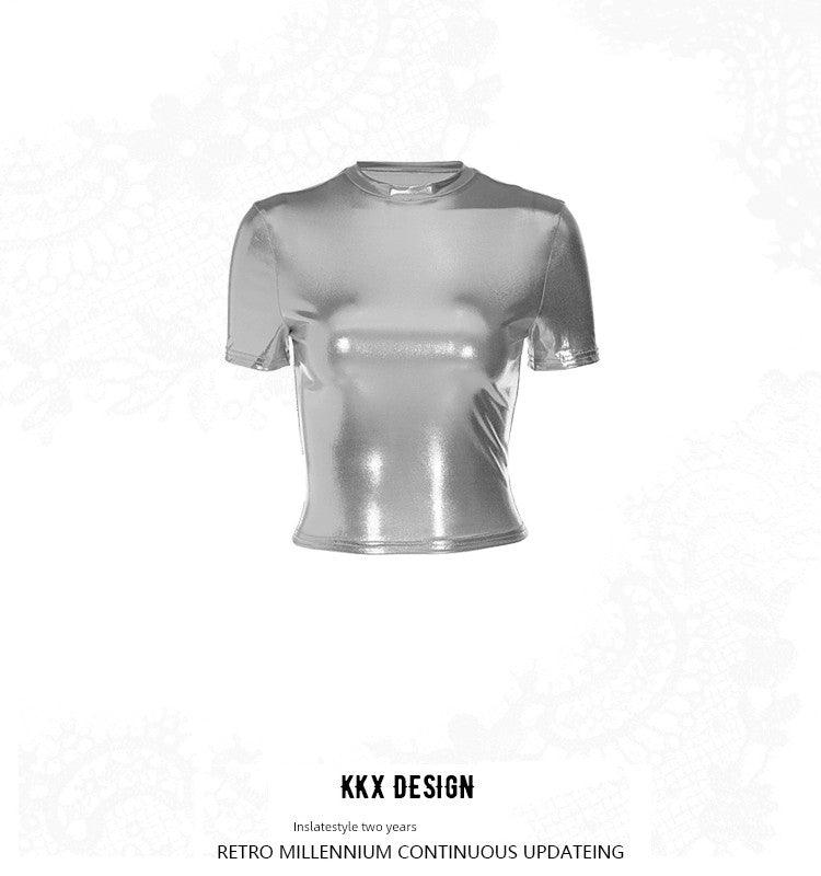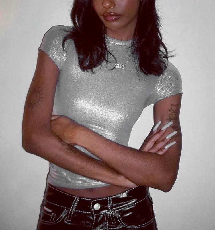 Silver Street-Style Crew Neck T-shirt Summer Chic Fashion
