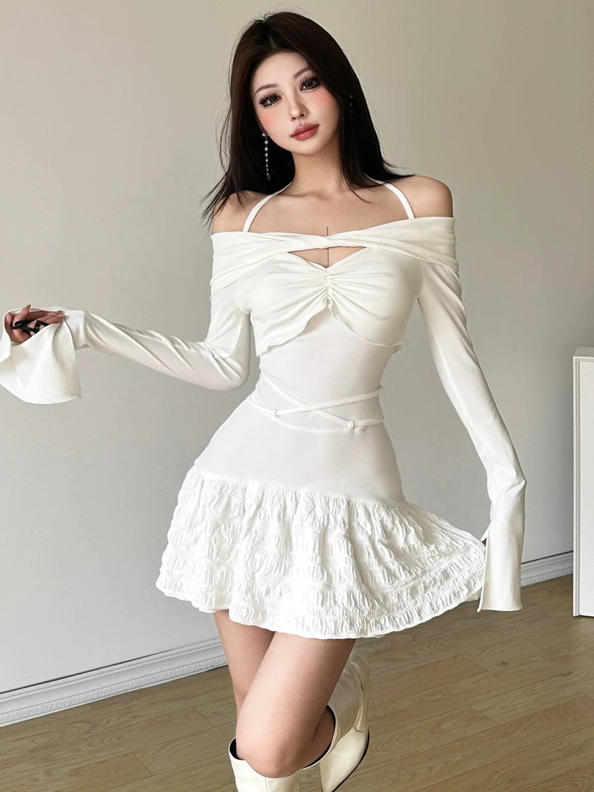 Kliou Winter Halter Dress Elegant Street-Style Fashion Look