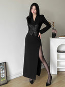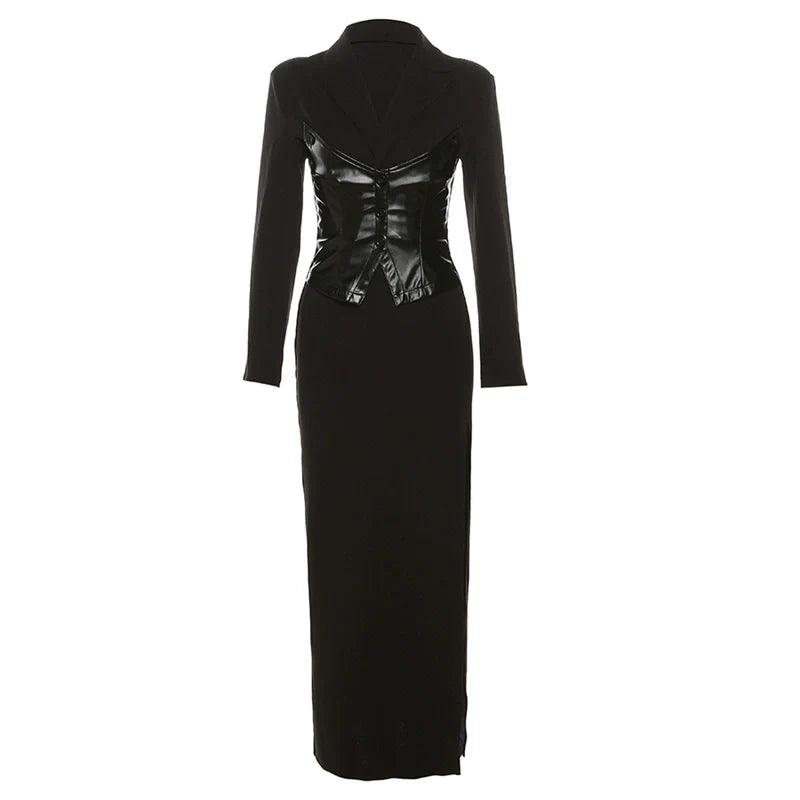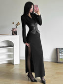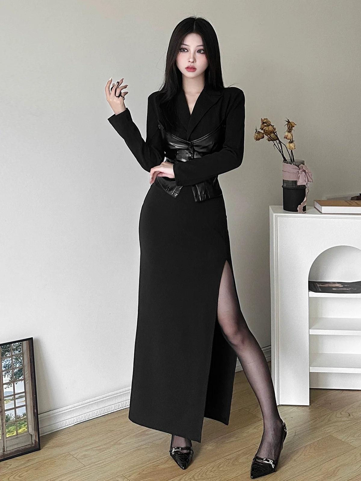 Discover the essence of edgy fashion, street style, and winter fashion trends. Elevate your wardrobe with the Kliou Sister Tuo Black PU Leather Sheath Dress.