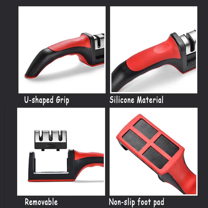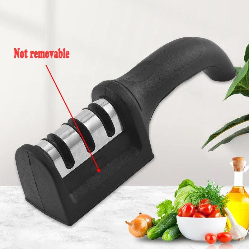 Introducing our Knife Sharpener: Upgrade Your Kitchen Knives with Ease! This essential tool is designed to enhance your cooking experience by providing a quick and efficient solution for sharpening your kitchen knives. With its non-slip base and ergonomic handle, knife sharpening has never been easier or safer!