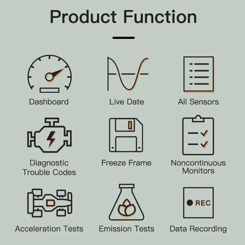 • Extensive Functionality: Read and clear diagnostic trouble codes, monitor fuel efficiency, and gain insights from sensor data.