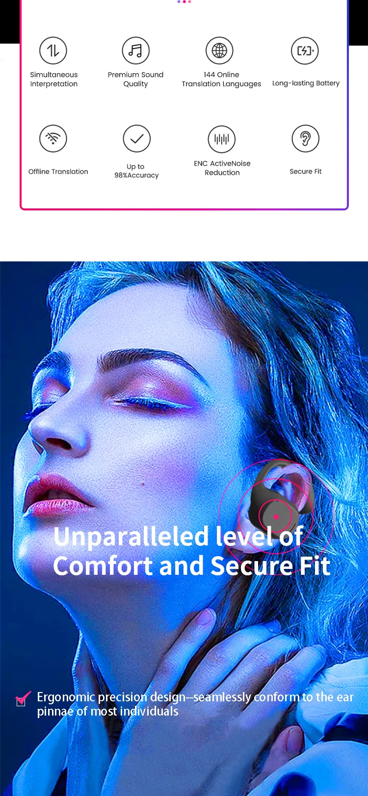 • 3-in-1 Functionality: Use these earbuds not only for translation but also for music playback and phone calls.