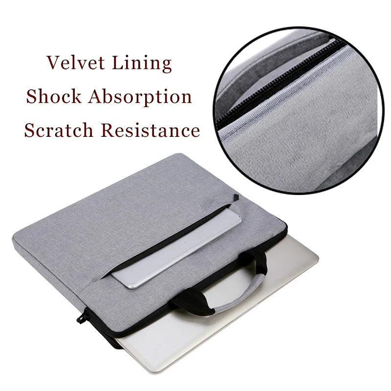 A: The Elegant Laptop Sleeve for Fashionable Professionals Essential blends style with rugged protection—universal laptop compatibility across 13.3", 14.1", 15.6", and 17" models, a wear-resistant Oxford exterior, and a plush velvet interior that cushions ultra-thin devices, making it ideal for daily commutes and essential meetings.