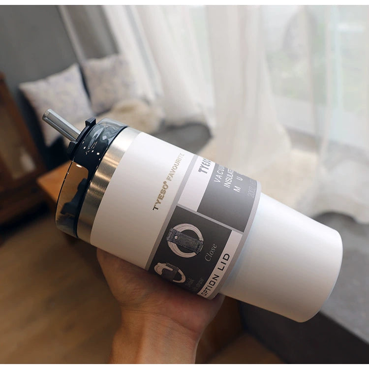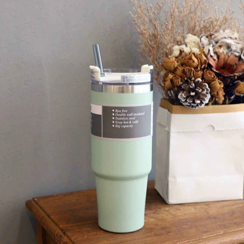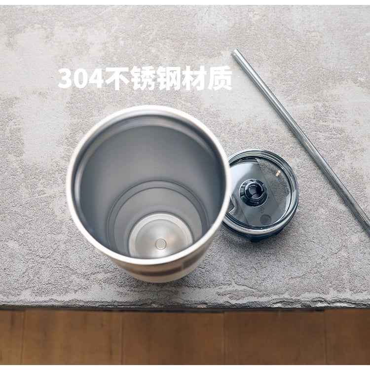 Large Capacity Stainless Steel Thermos Cup with Straw Coffee Cup