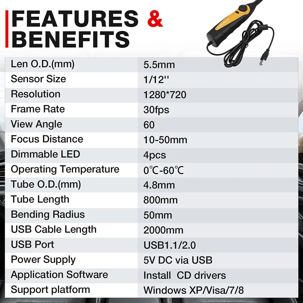 • Automotive Inspections: Assess engine quality and check oil pressure effortlessly.
