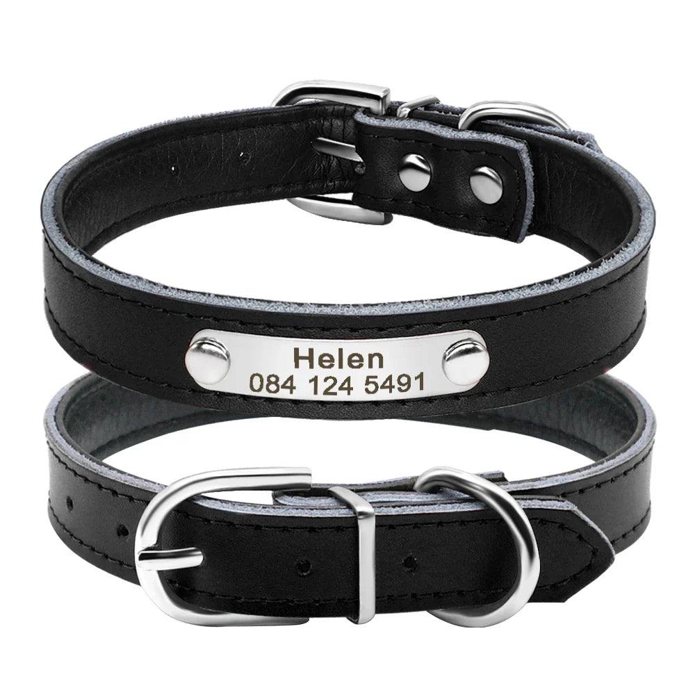 This durable leather collar is designed for various breeds including cats, Chihuahuas, Yorkies, Poodles, Bulldogs, Pitbulls, and Beagles.