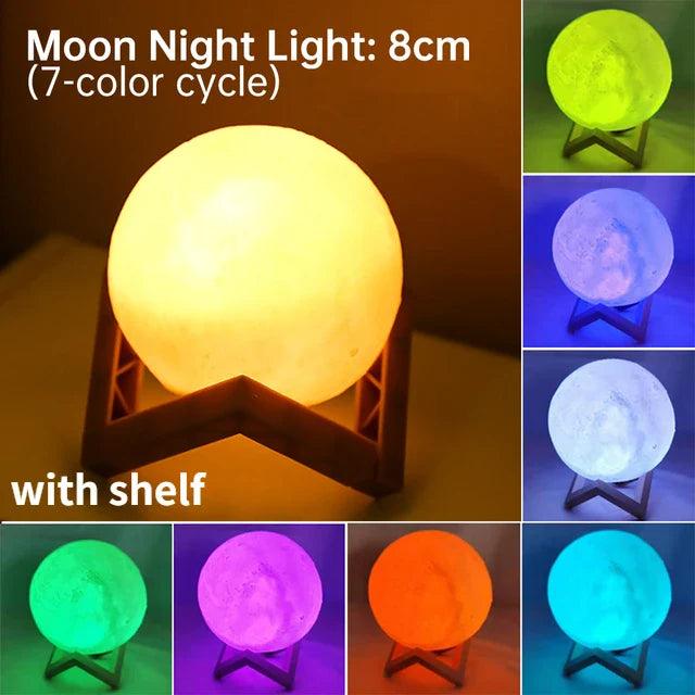 3D Printed Color-Changing Moon Lamp Portable LED Night Light