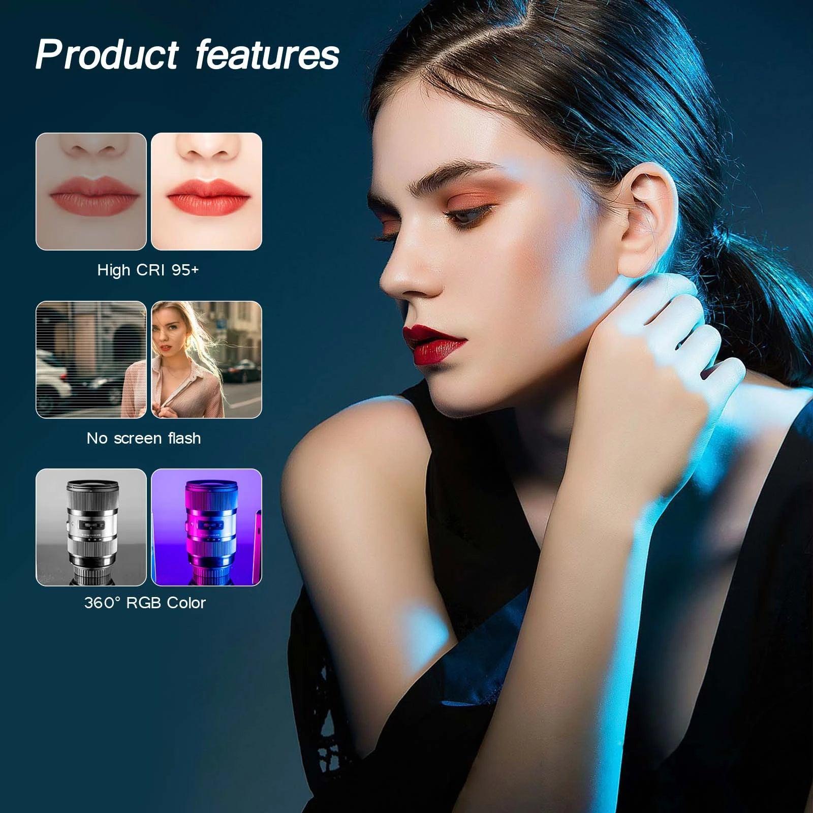 This ultimate lighting solution enhances your content creation with precision lighting for professional results, perfect for vloggers, live streamers, photographers, and makeup artists seeking vibrant visuals. Offers unmatched flexibility and convenience for all your creative projects, ensuring your content stands out with professional-looking quality.