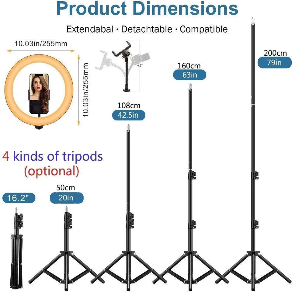 The Professional LED Ring Light Kit With Bluetooth Remote is designed to elevate your lighting setup for makeup application, photography, and video creation. Its versatile features—handy wireless control, flexible tripod options, and smartphone compatibility—make this ring light kit a reliable partner for creators on the move.