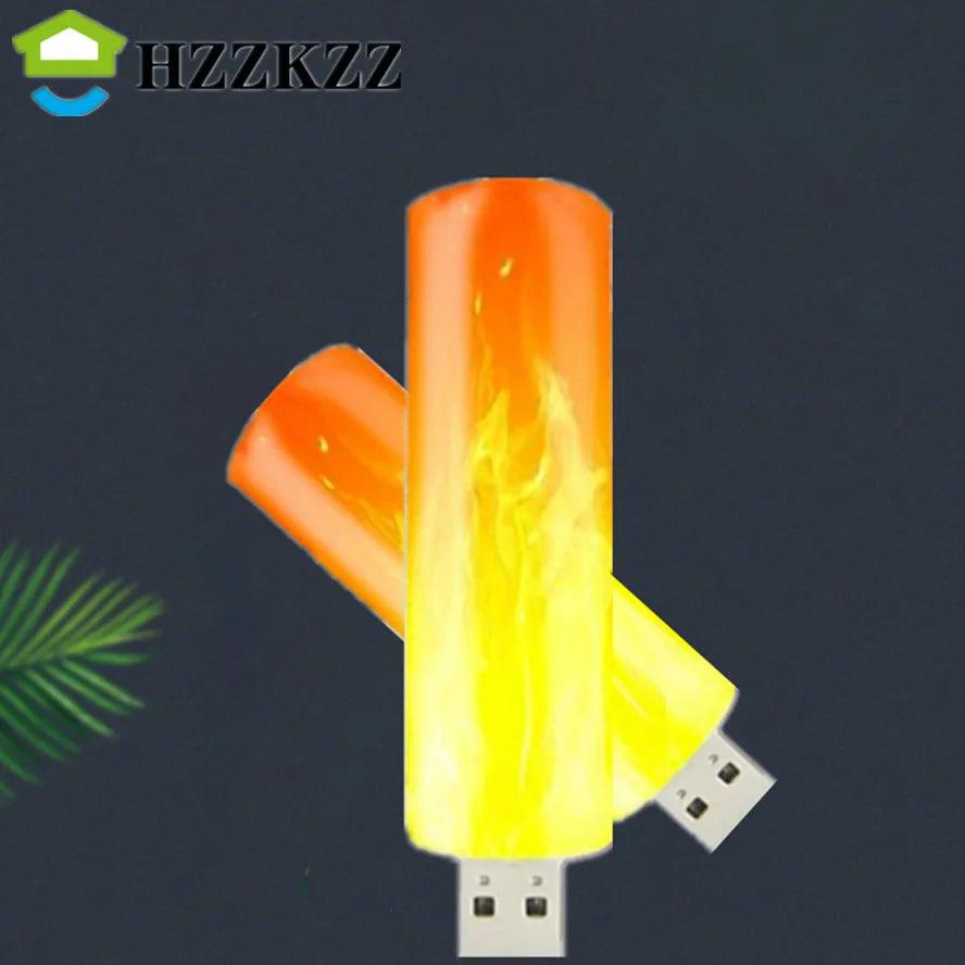 LED USB Atmosphere Light Flame Flashing Candle Lamp for Camping