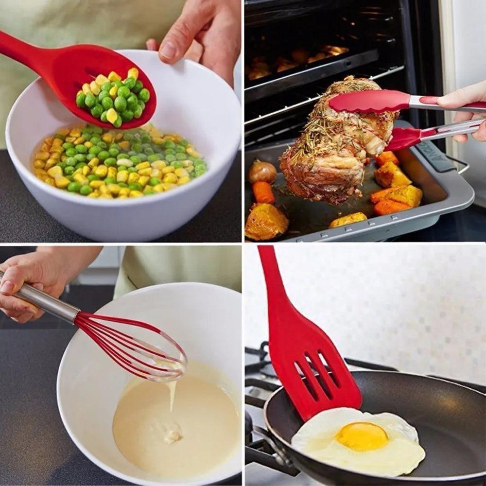 This comprehensive utensil set includes essential tools such as a Turner, Slotted Spoon, Ladle, and more, making it suitable for any recipe. Whether you're an experienced chef or just starting, the 10 Piece Non Stick Silicone Kitchen Utensil Set makes cooking a joyous endeavor.