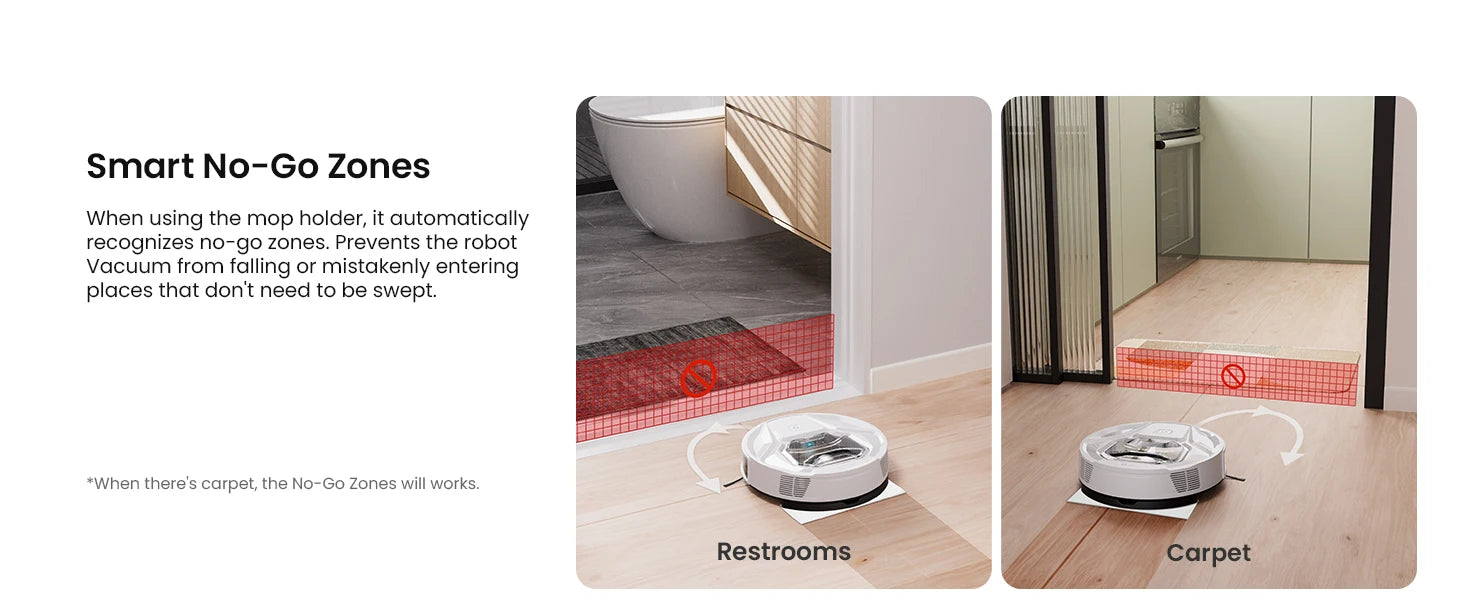 • 7. Smart No-Go Zones: Prevents entry into restricted areas during mopping.