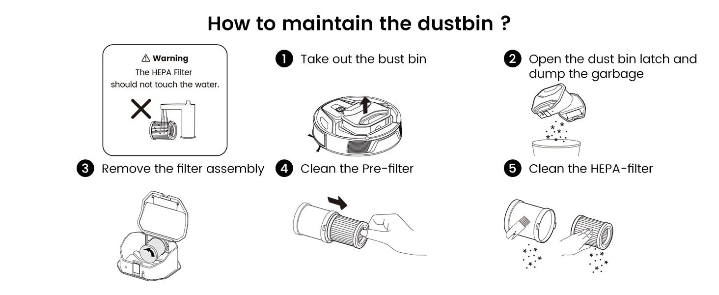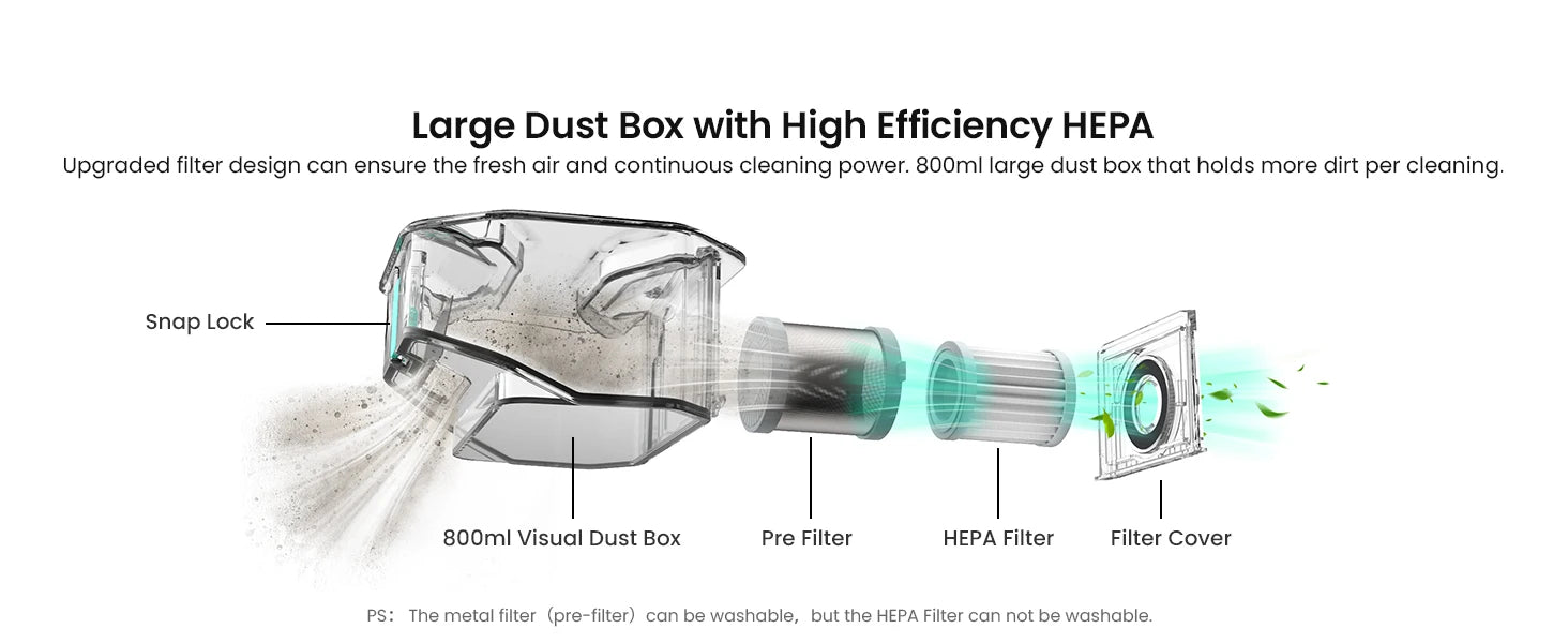 • 5. 800ML Visible Dustbin: Less frequent emptying for effortless cleaning.